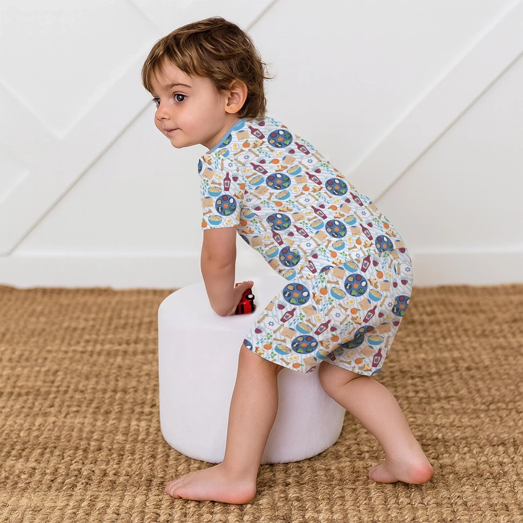 Celebrate the beauty of tradition in cozy comfort! This charming print features Passover favorites — Seder plates, matzah, wine, candles, and sweet symbolic treats — bringing the warmth of the holiday to every bedtime. Made from buttery-soft, breathable bamboo, it’s perfect for little ones to snuggle up and enjoy the season of togetherness. ✨💙