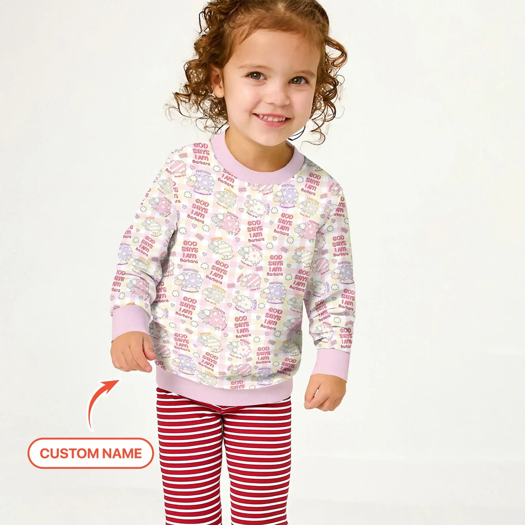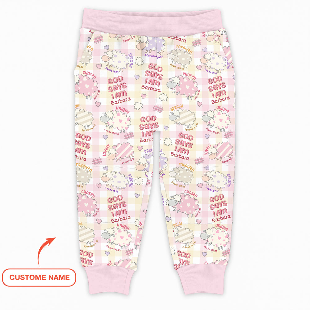 Little Lamb God Says I Am Custom Name Short Sleeve Shorts Pajama Set