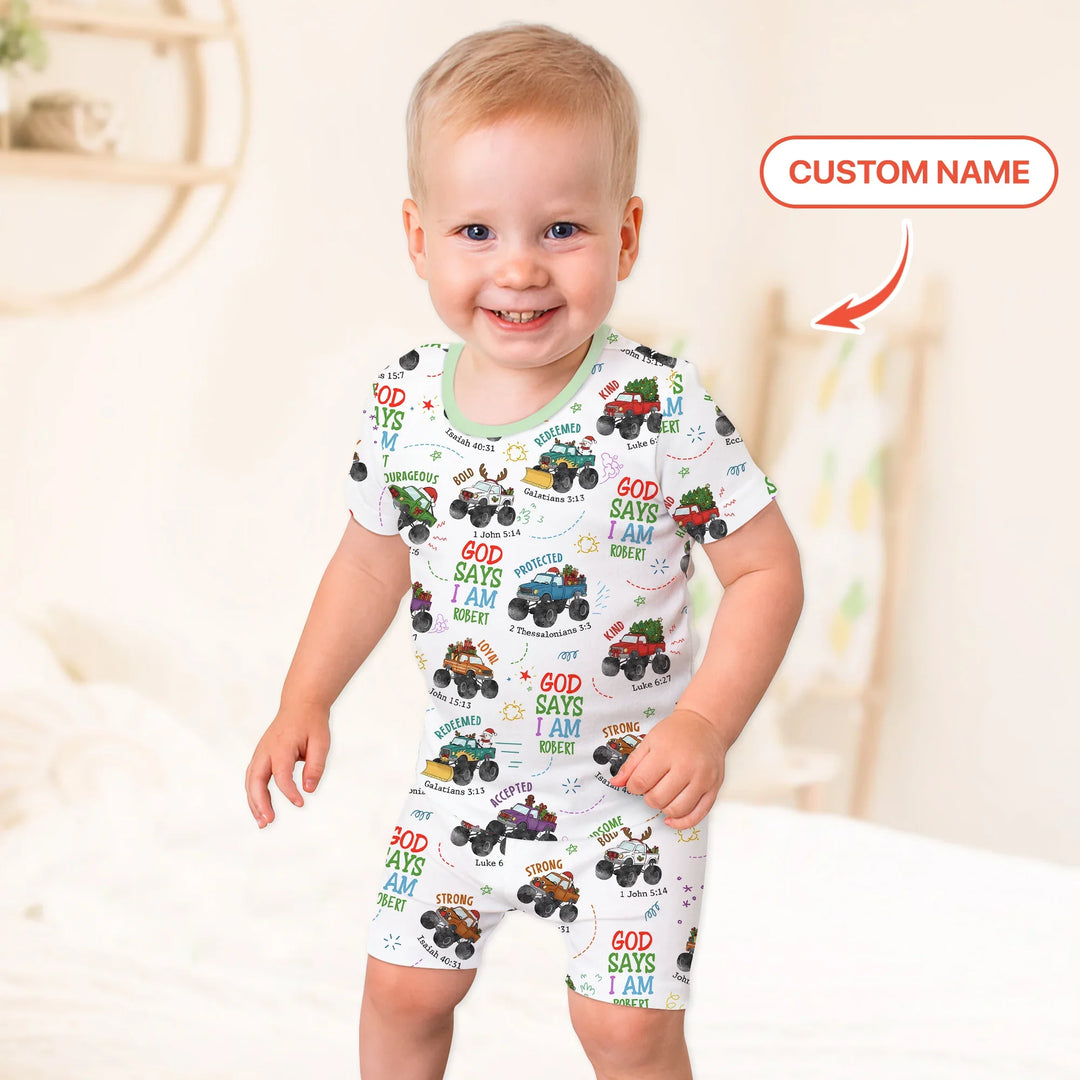 Personalized God Says I Am Christmas Monster Truck Shorty Zippy