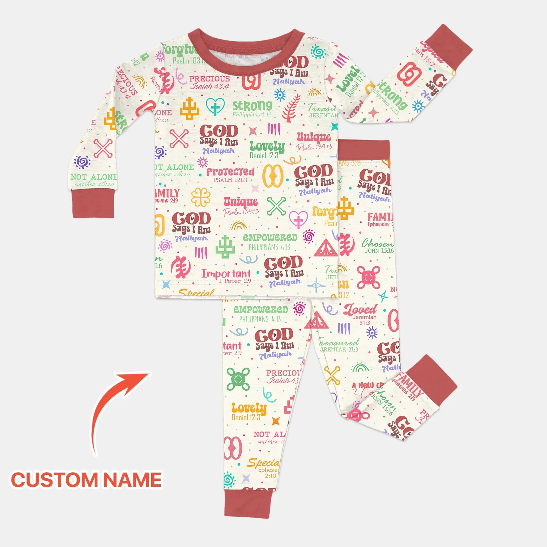 Personalized God Says I Am Custom Name Two Piece Long Sleeve Pajama Set