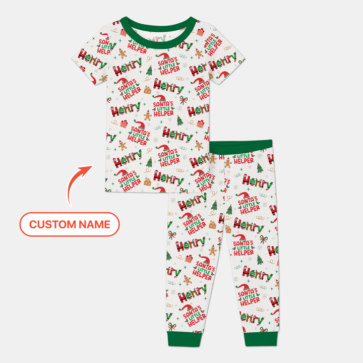 Personalized Santa's Little Helper Two Piece Short Sleeve Pajama Set
