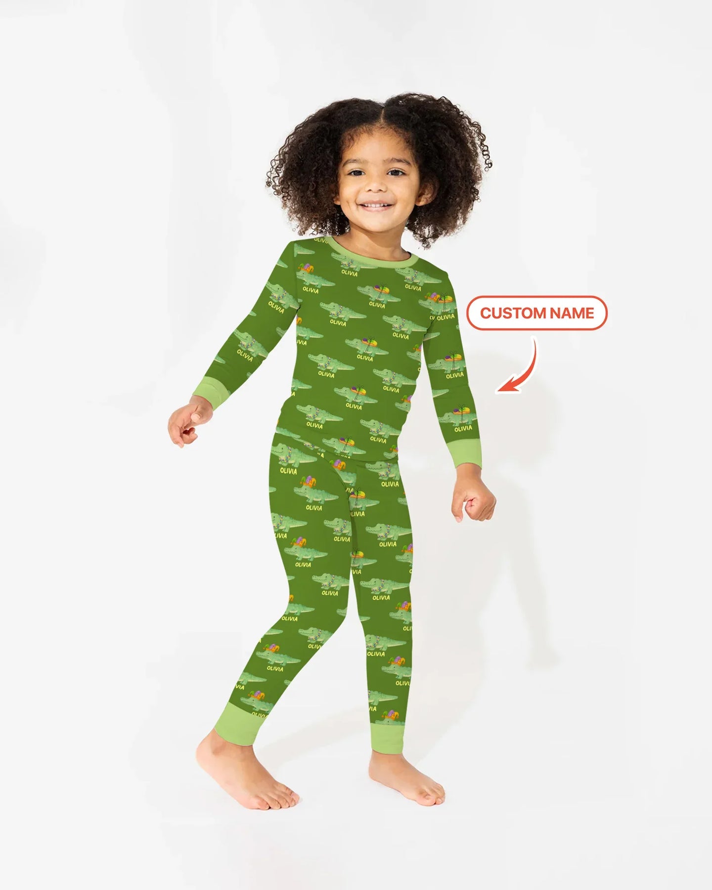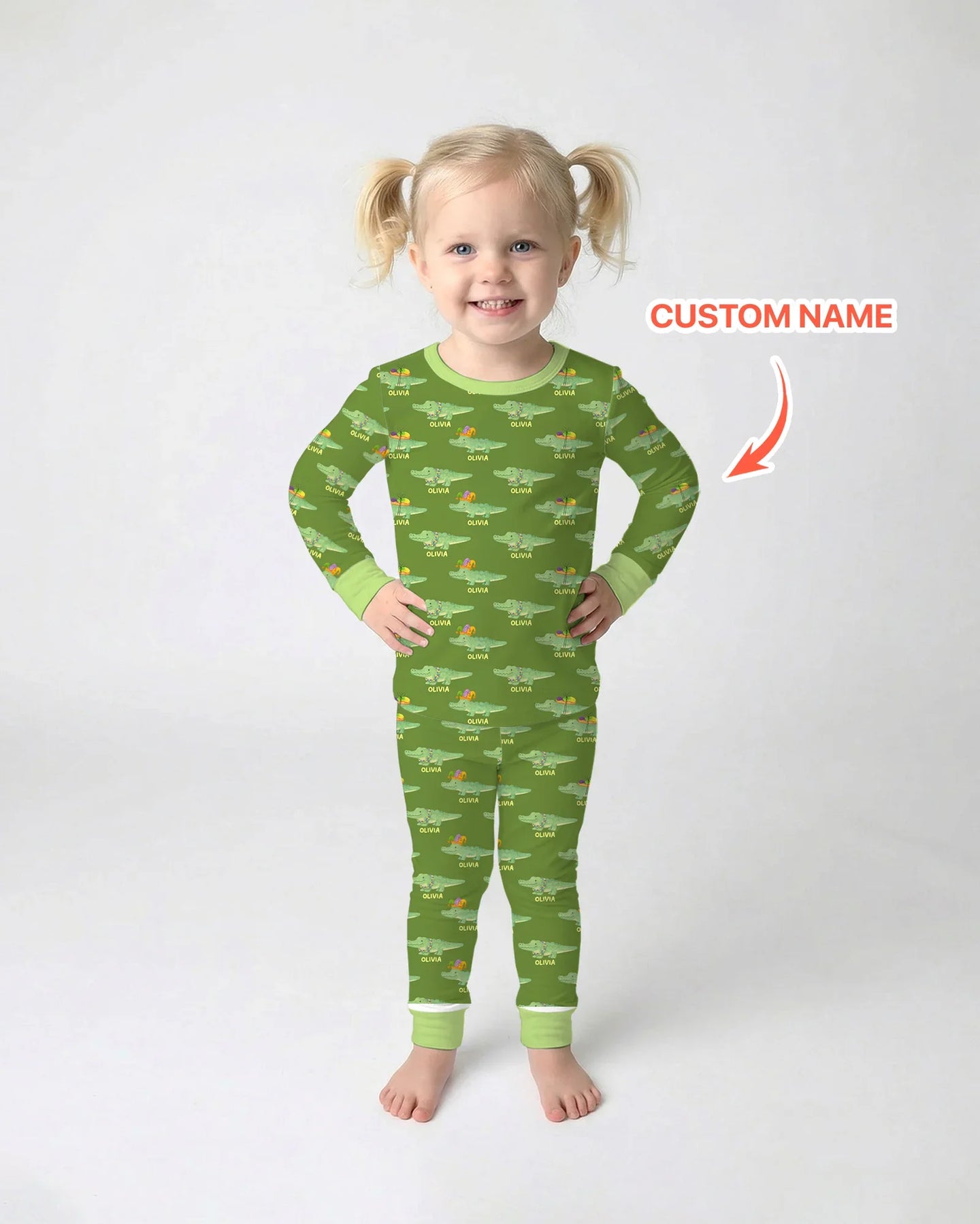 Custom Name Mardi Gras Gator Two Piece Long Sleeve Pajama Set
