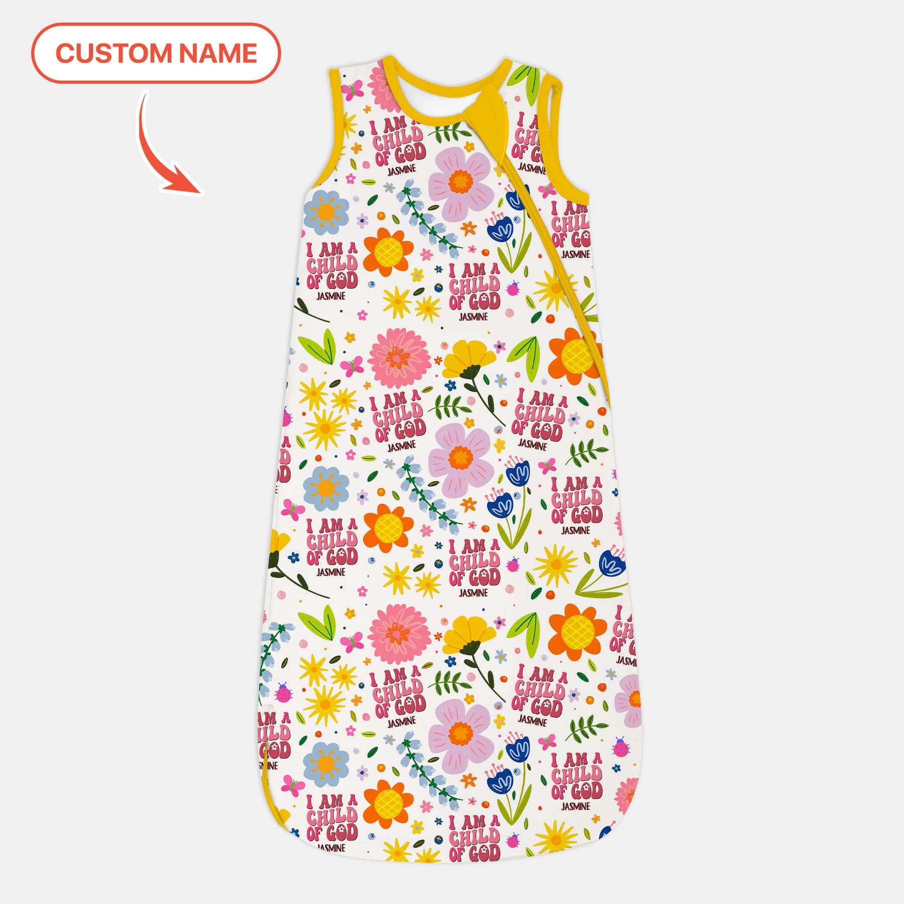 Brighten every moment with our “I Am a Child of God” Flower Collection! Bursting with colorful blooms and the uplifting reminder I am a child of God, this cheerful design celebrates your little one’s joy, faith, and uniqueness. Add their name for a personalized touch that makes each piece extra special. Made from ultra-soft, breathable bamboo fabric, this collection is gentle on delicate skin—perfect for playful days, cozy nights, and every snuggly cuddle in between.