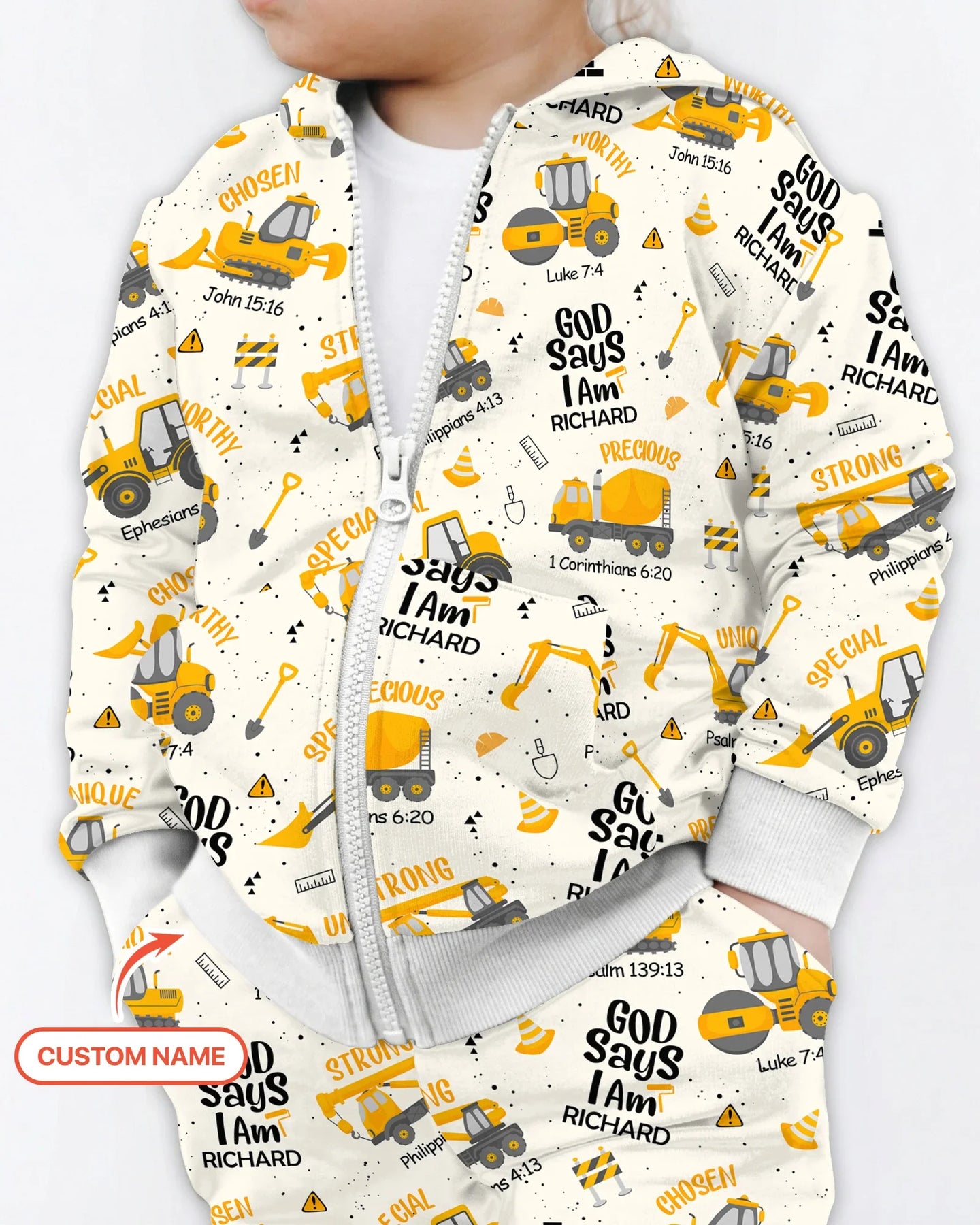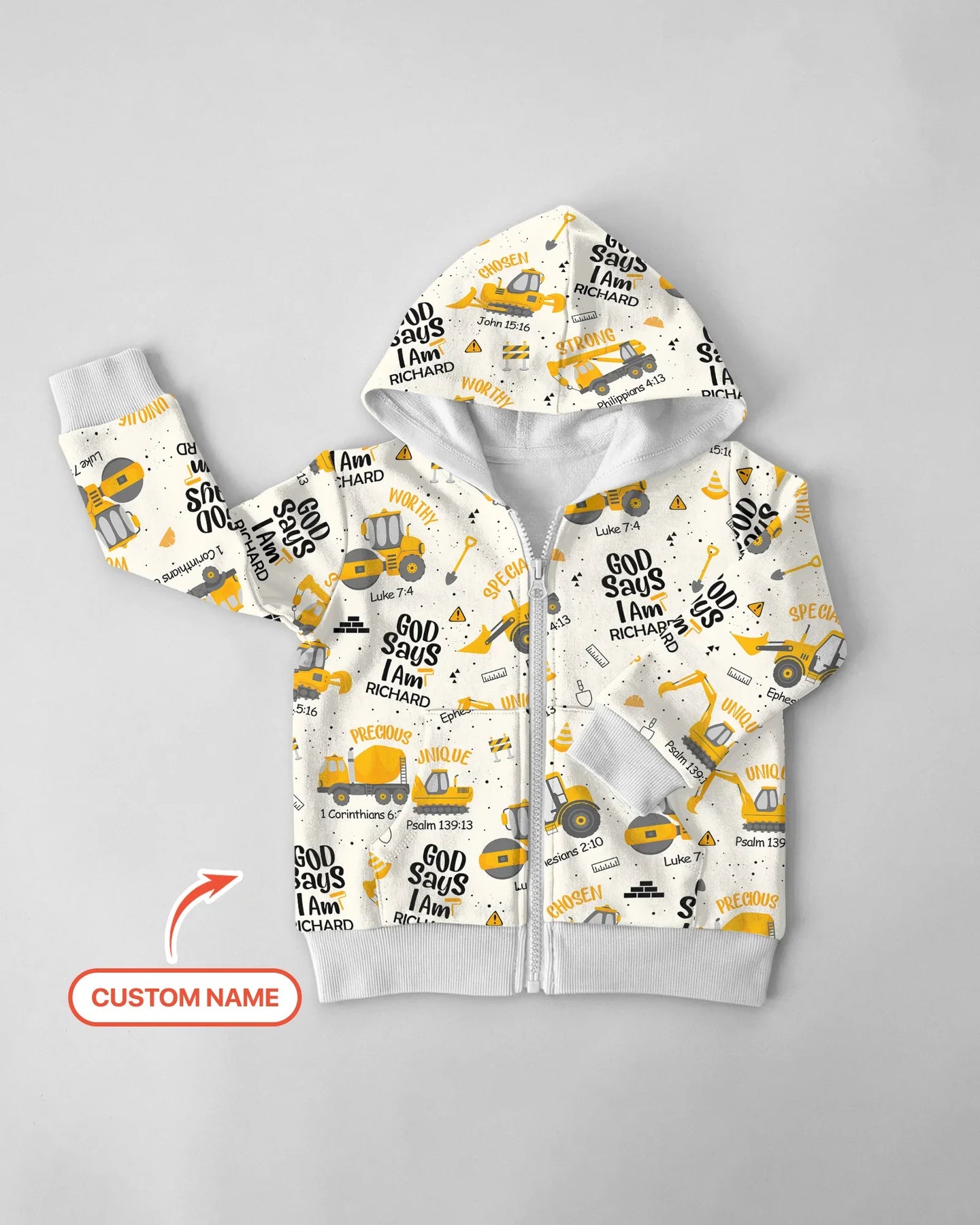 Build up faith and fun with our God Says I Am – Construction Vehicles Custom Name Collection! Packed with colorful trucks, diggers, and fire engines alongside uplifting affirmations, this design reminds little ones of their strength, courage, and worth in God’s eyes. Add their name for a personalized touch that makes each piece truly unique. Made from ultra-soft, breathable bamboo fabric, this collection is gentle on delicate skin—perfect for playful days, cozy nights, and every snuggly cuddle in between.