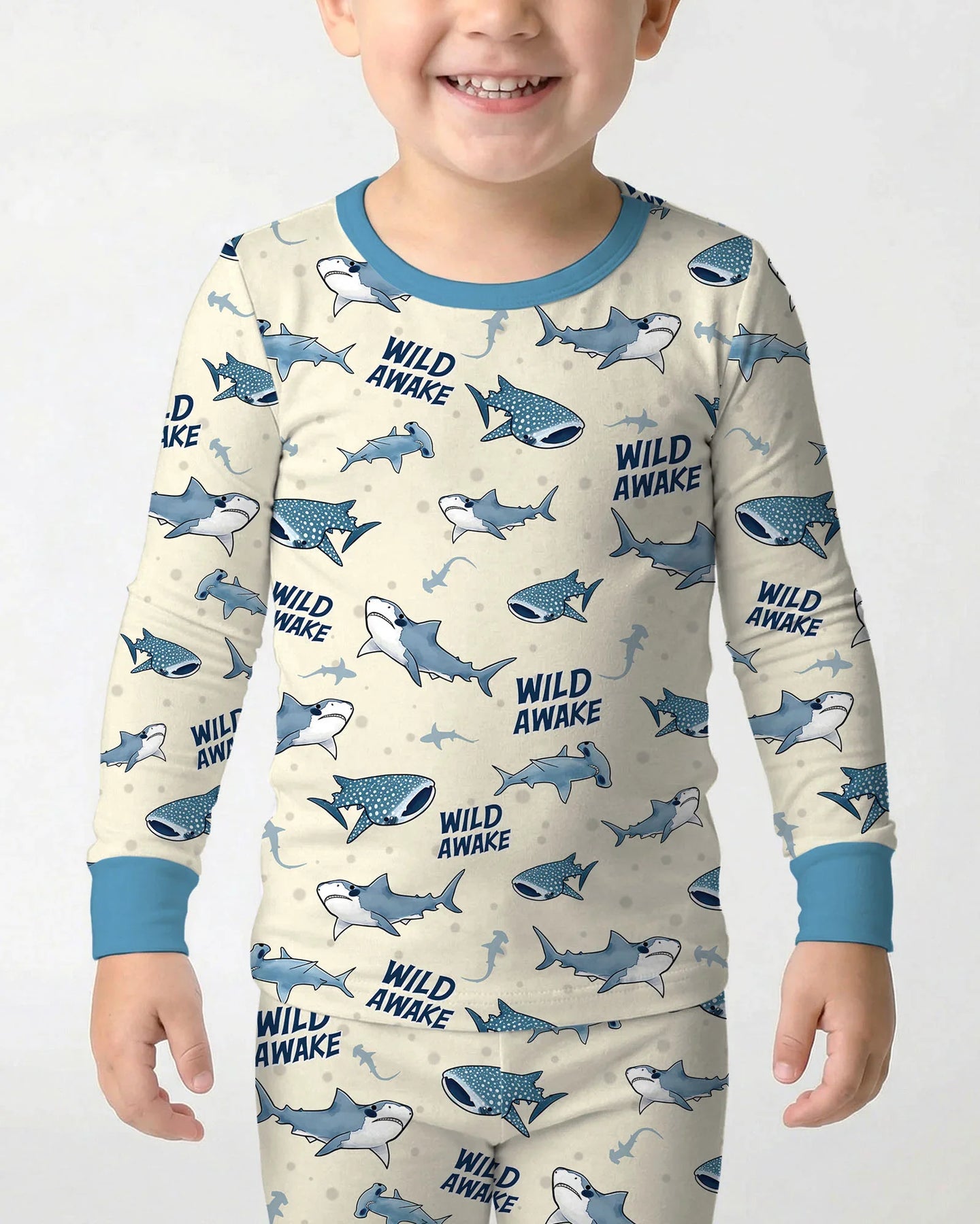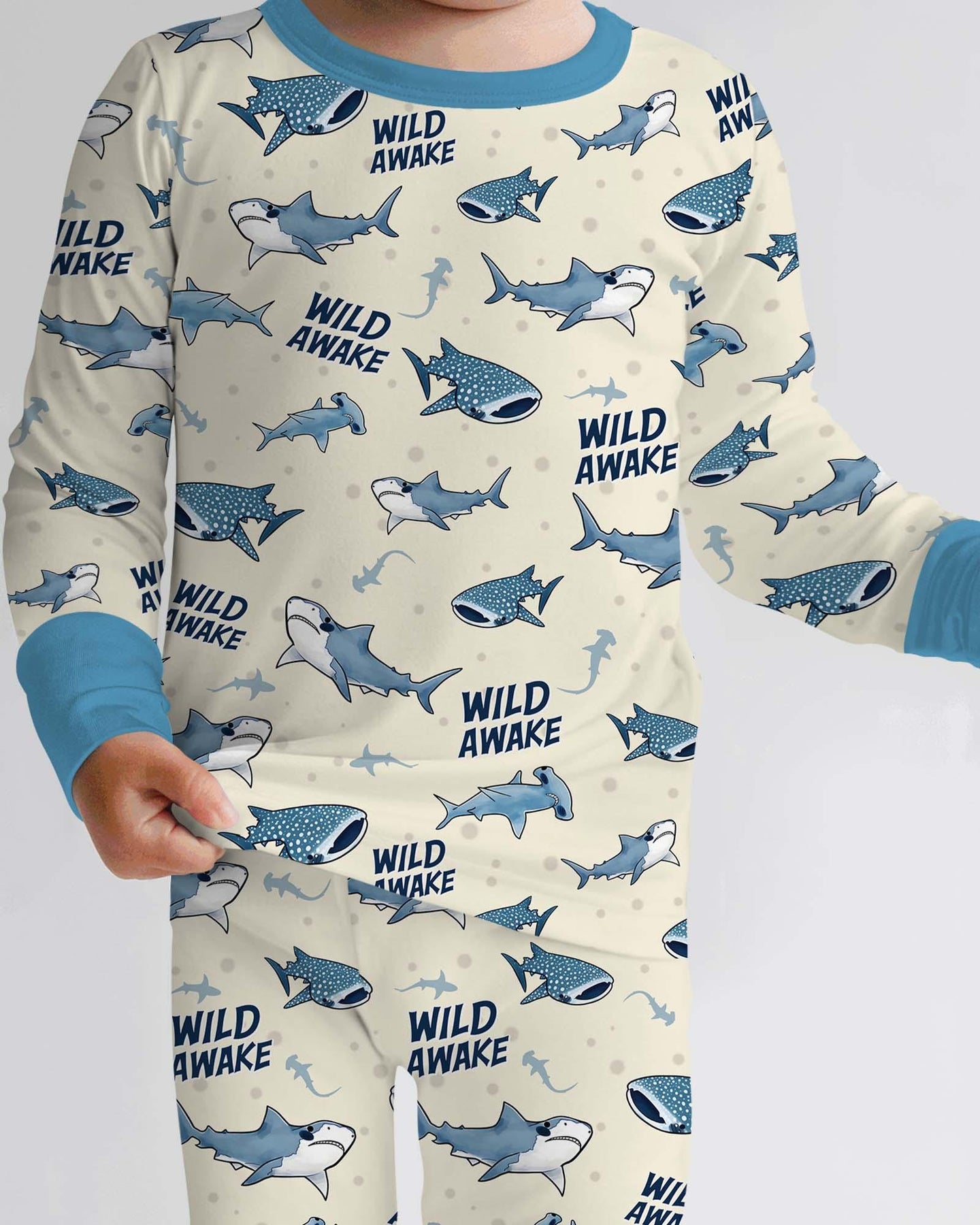 Make late-night giggles and early-morning energy a little more fun with the Wide Awake Matching Daddy & Me collection. Covered in playful sharks, ocean doodles, and the bold “Wild Awake” motto, these matching PJs are made for little ones who never want the adventure to end.