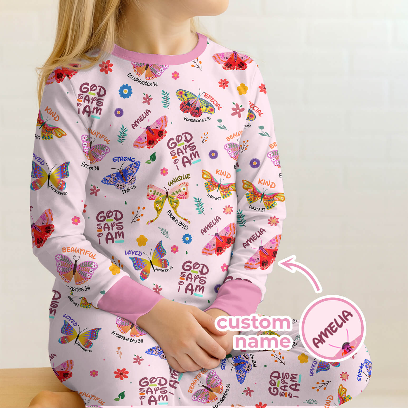 Custom Name God says I am Butterfly Two Piece Long Sleeve Pajama Set , Custom Name God says I am Butterfly Two Piece Long Sleeve Pajama Set - 12-18M