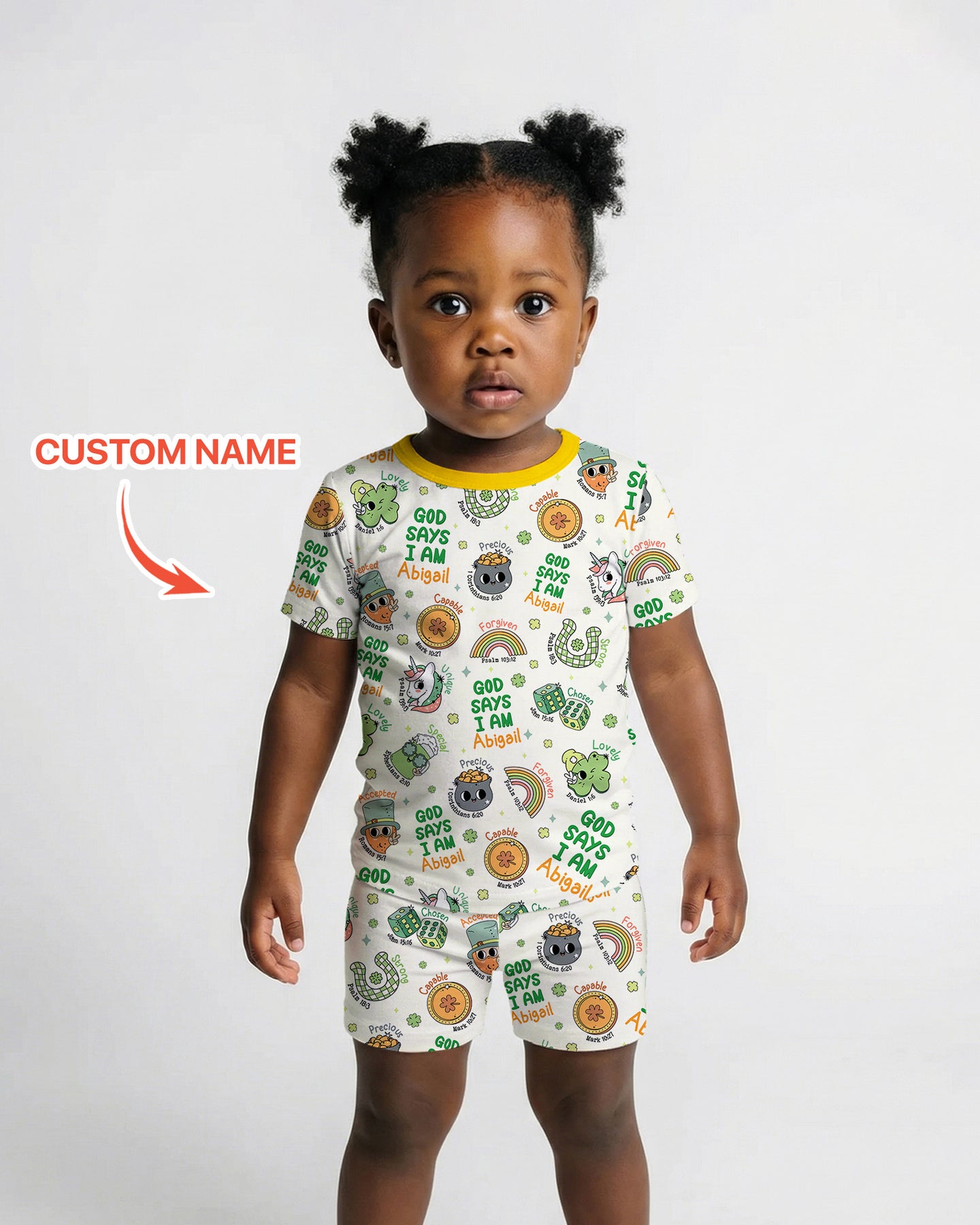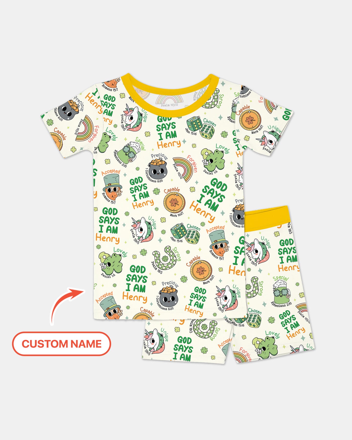 Personalized God Says I Am St. Patrick's Day Family Matching Two Piece Short Sleeve Shorts Pajama Set