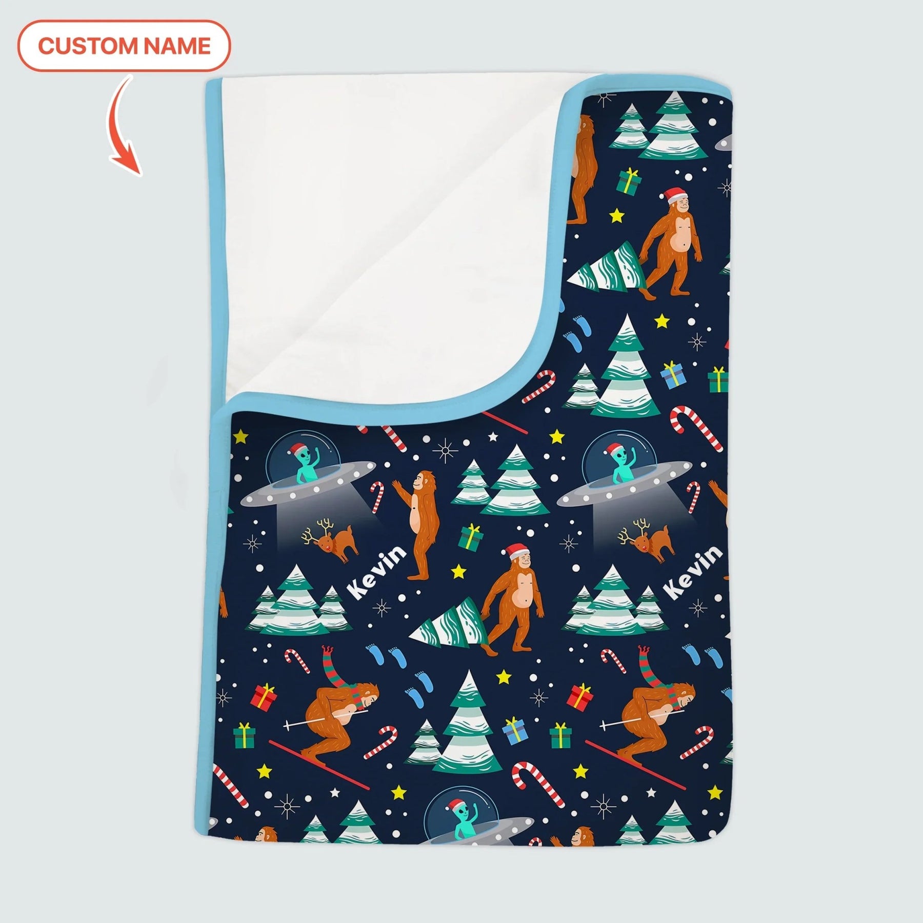 Step into the holiday season with a touch of adventure! Our Custom Name Bigfoot Christmas Collection brings festive fun and cozy comfort together in one playful design. Featuring cheerful Bigfoot characters surrounded by Christmas trees, candy canes, gifts, and snowy mountains, this pattern captures the spirit of a magical forest Christmas.