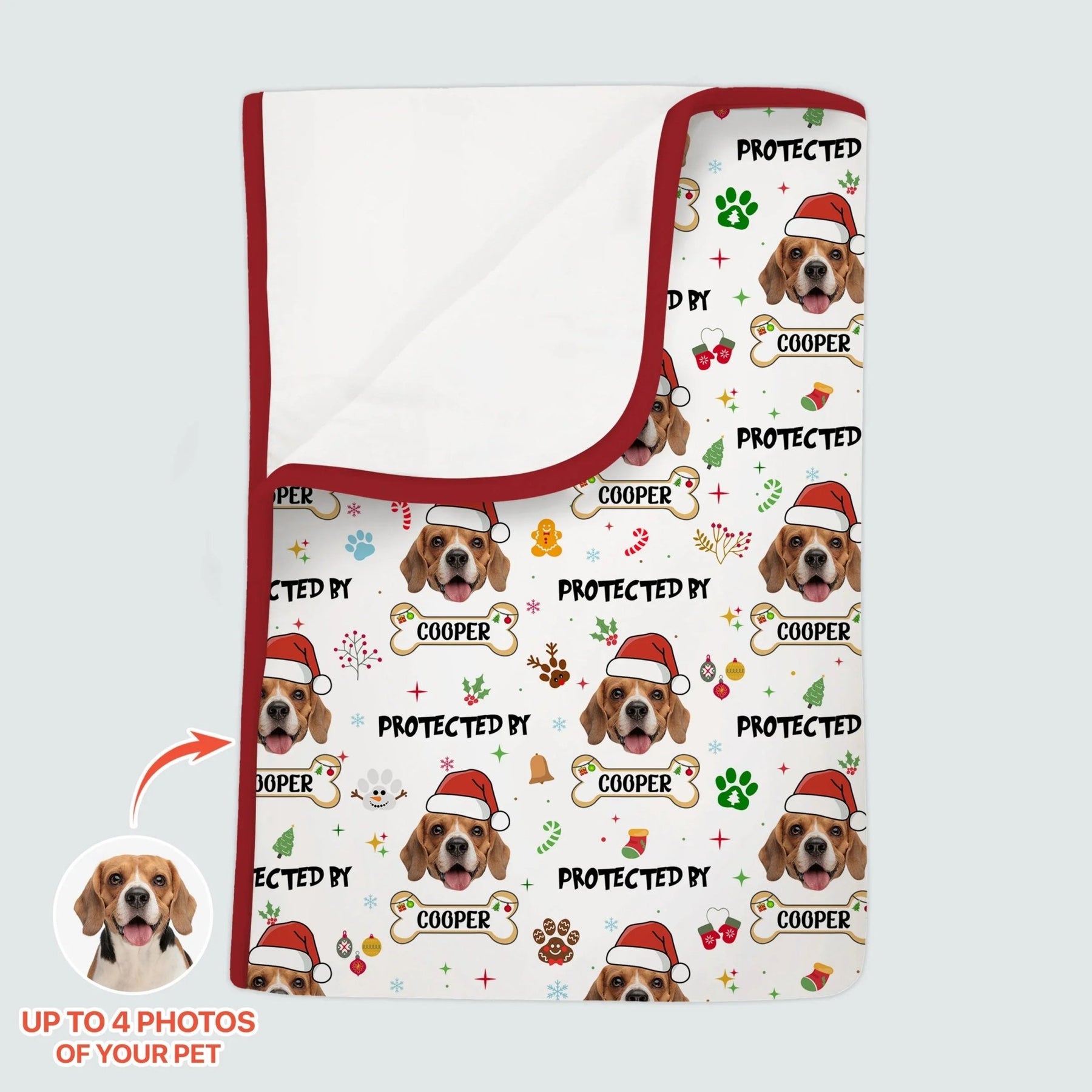 Custom Dog Photo "Protected By" Christmas Toddler Blanket