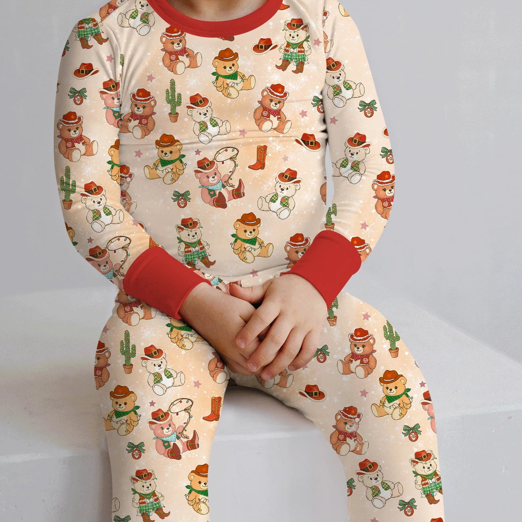 Christmas Cowboy Teddy Two Piece Long Sleeve Pajama Set