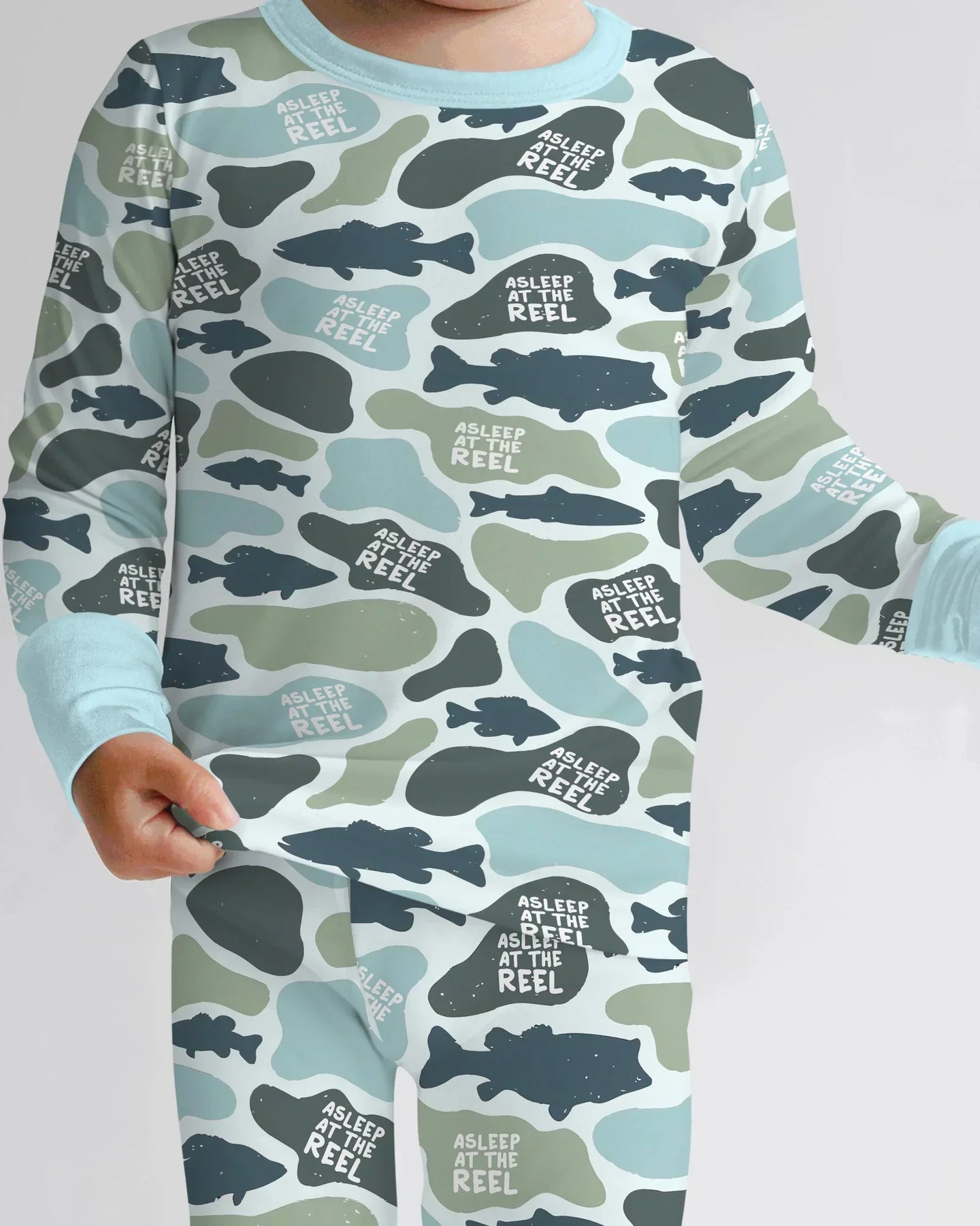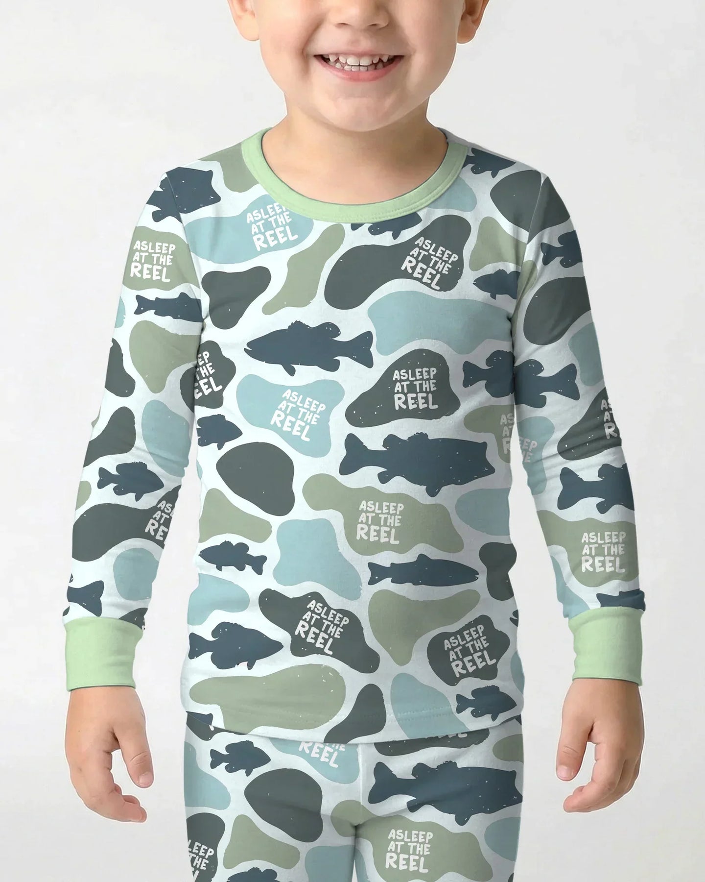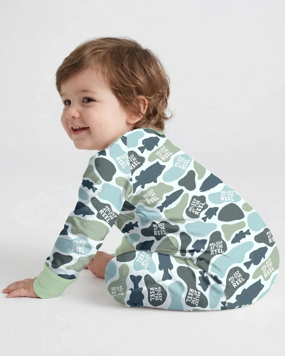 Inspired by peaceful nights and a shared love for fishing, the Asleep At The Reel Collection is made for dads and little anglers who love to match—even when it’s time to wind down. Featuring a playful fishing camo design with the signature “Asleep At The Reel” detail, this collection captures the relaxed, outdoorsy spirit of family life.