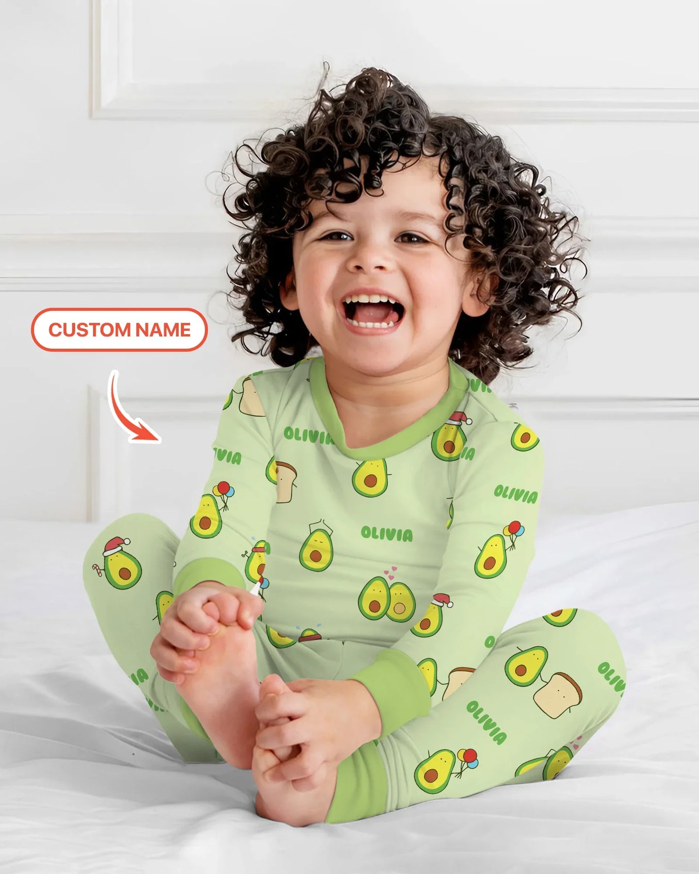 Custom Name Cute Avocado Two Piece Long Sleeve Pajama Set