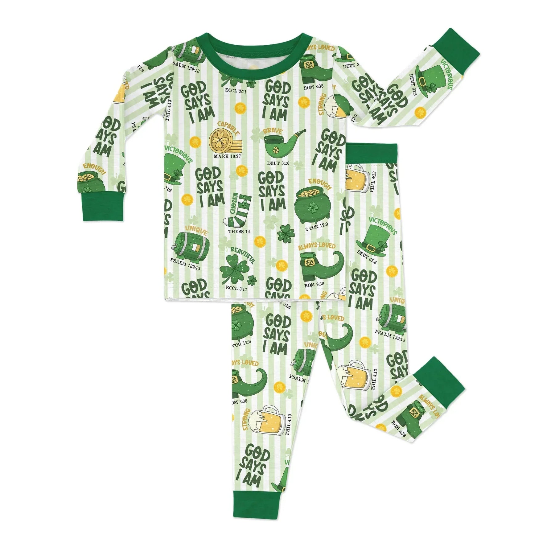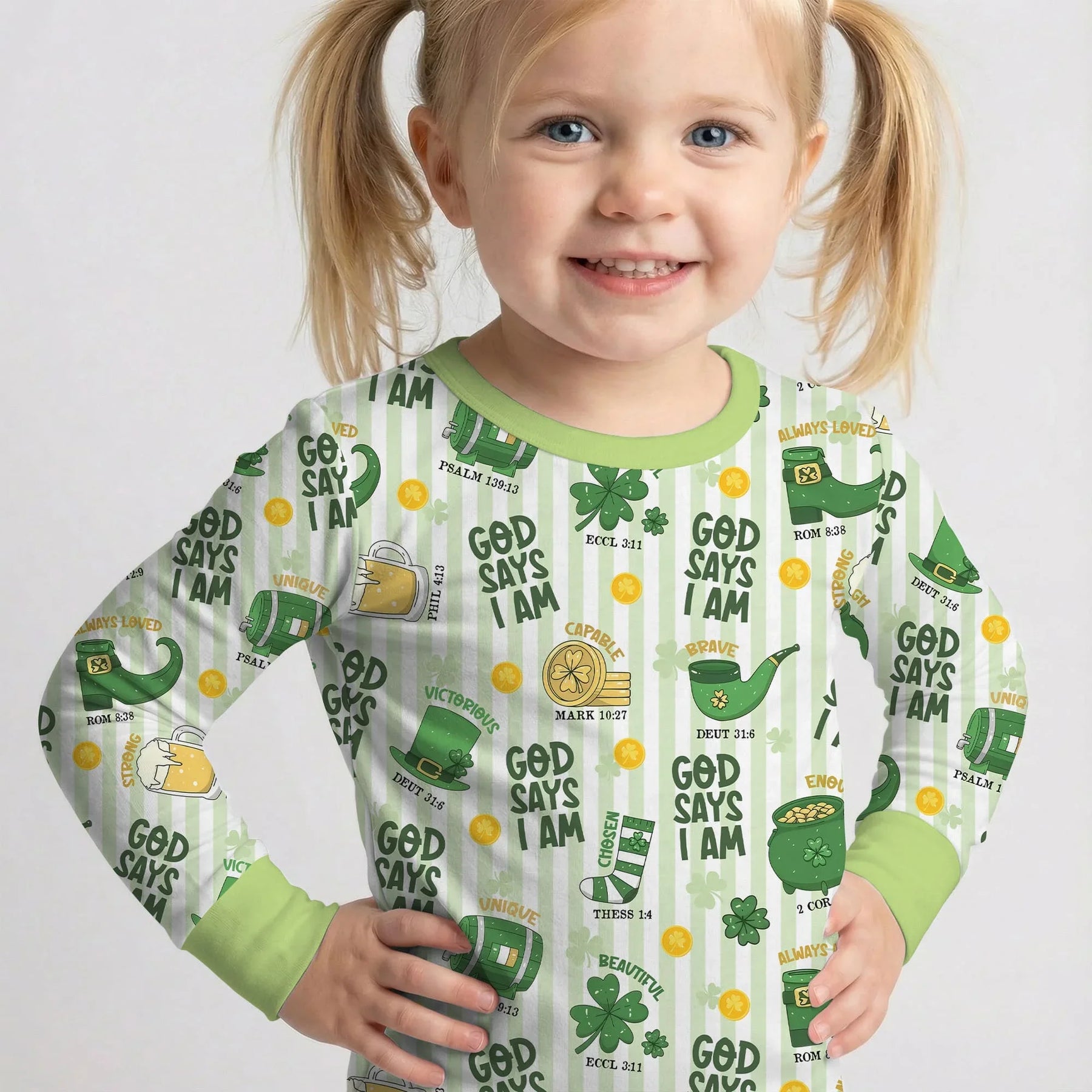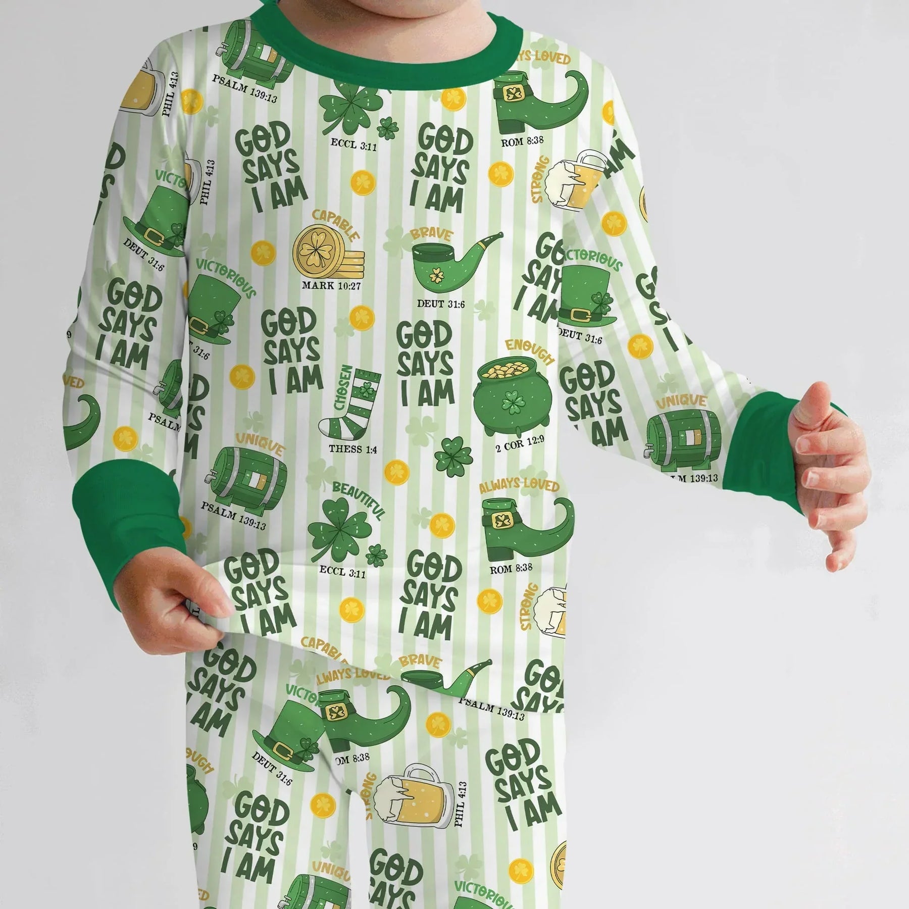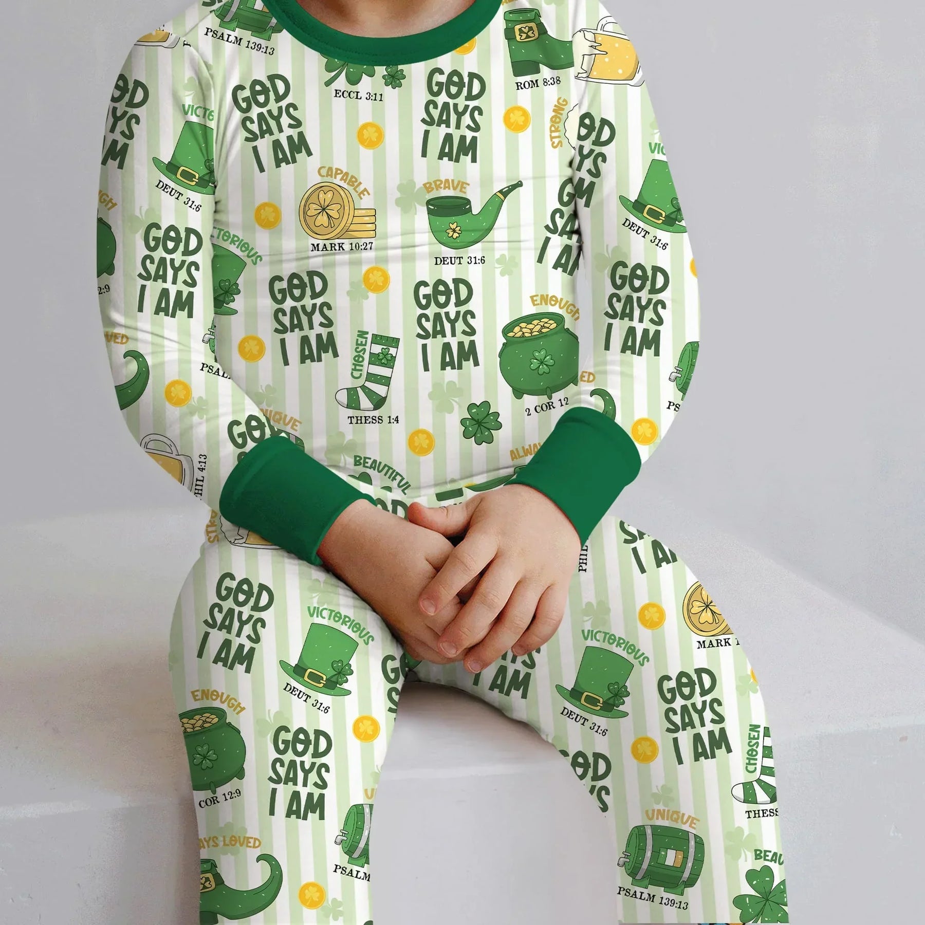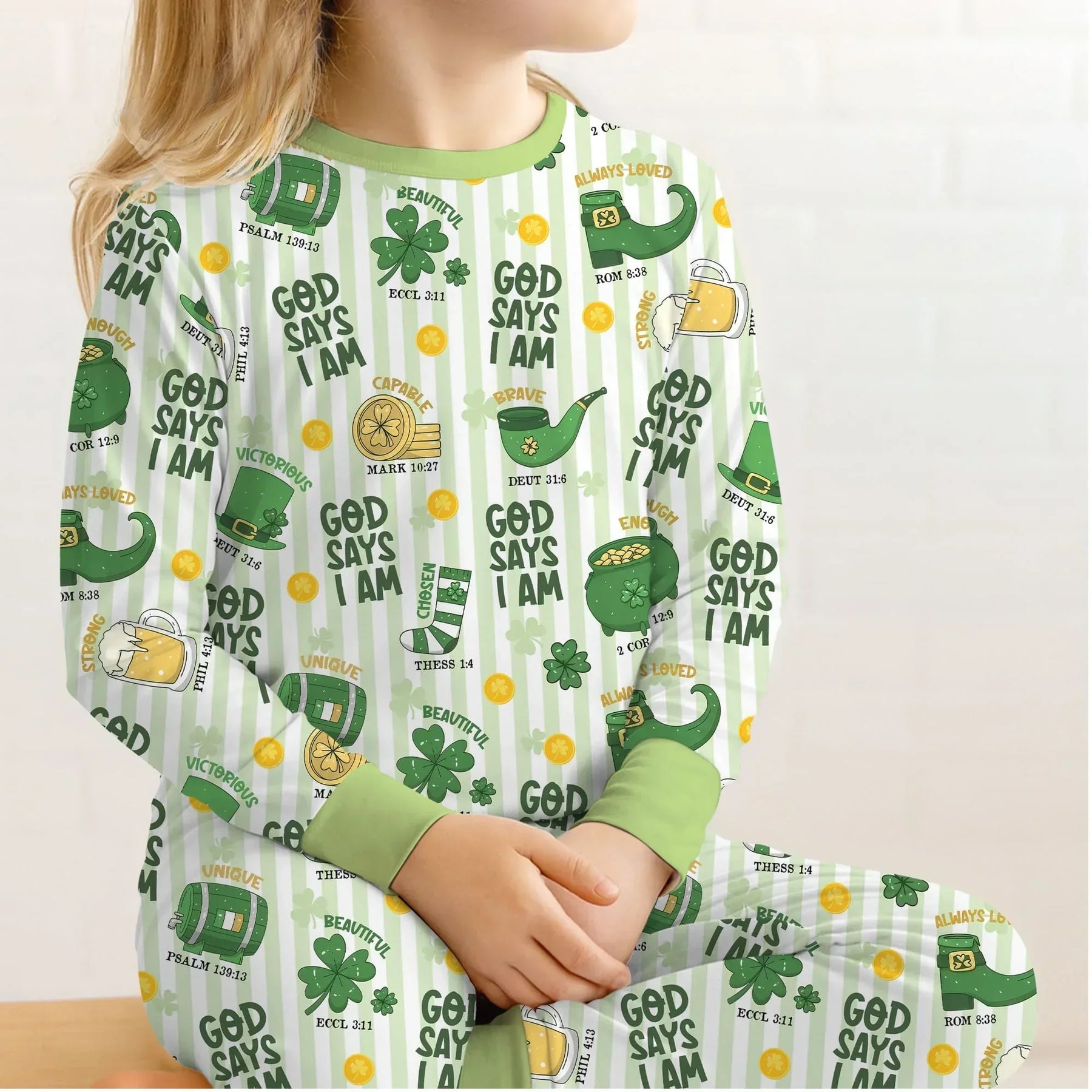 God Says I Am - Lucky & Loved Two Piece Long Sleeve Pajama Set
