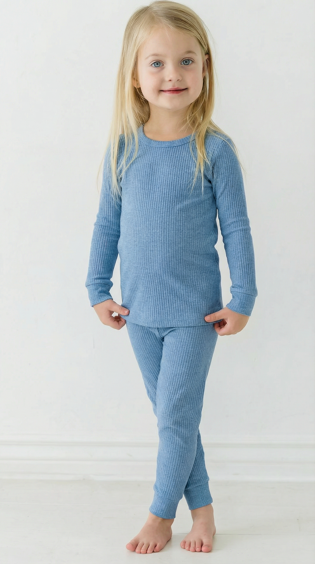 Heather Blue Ribbed Two Piece Long Sleeve Pajama Set