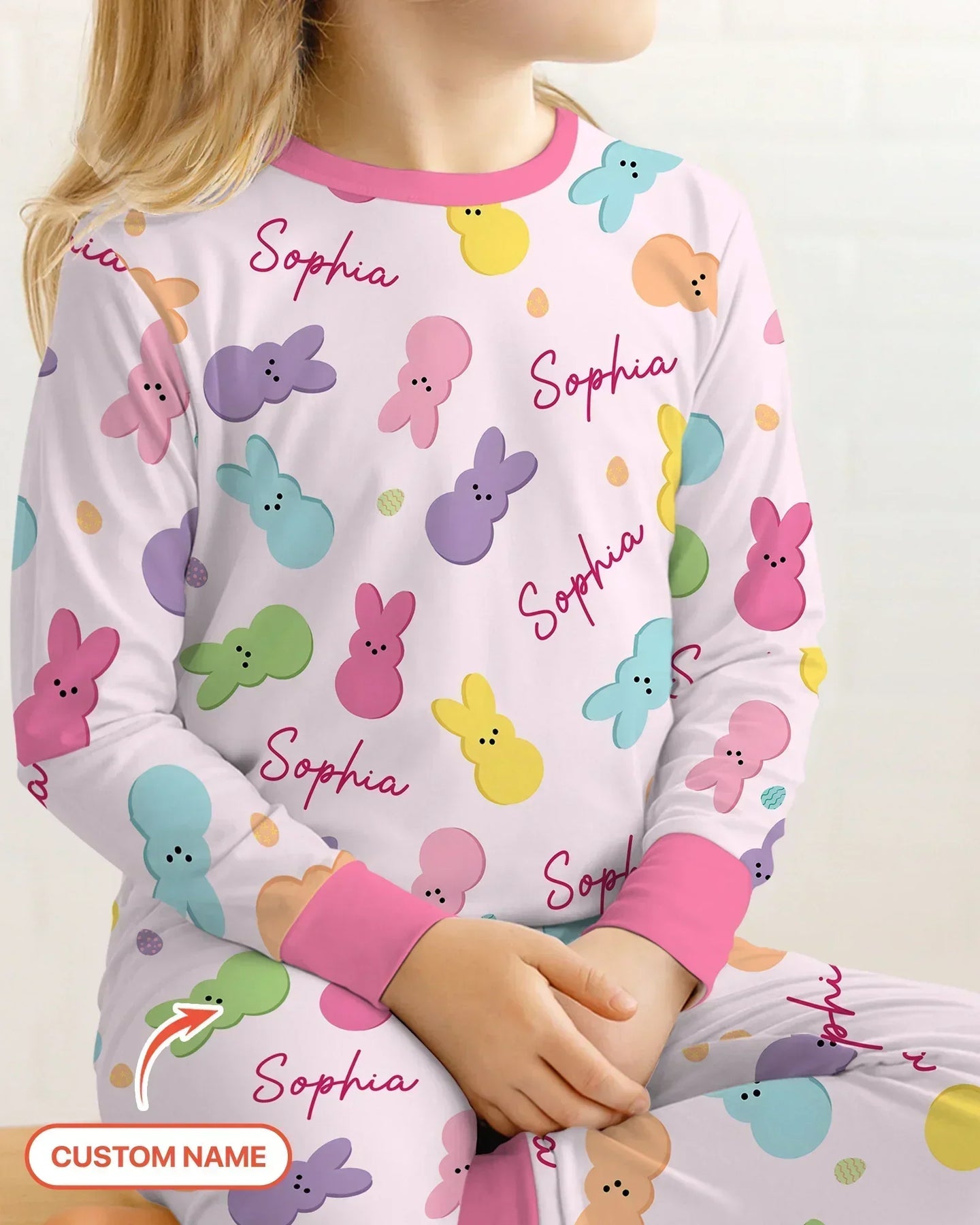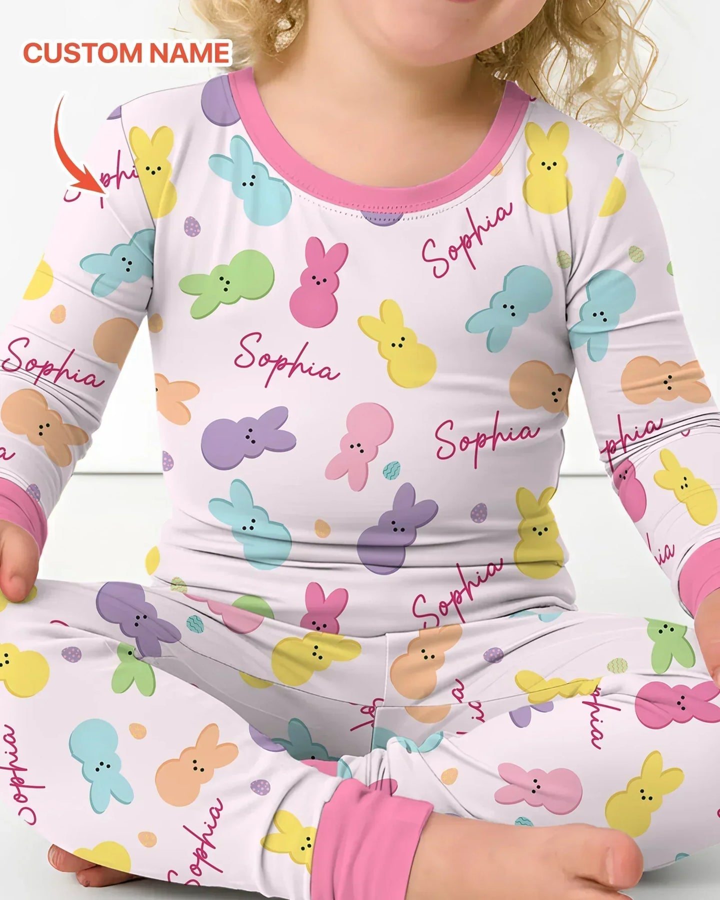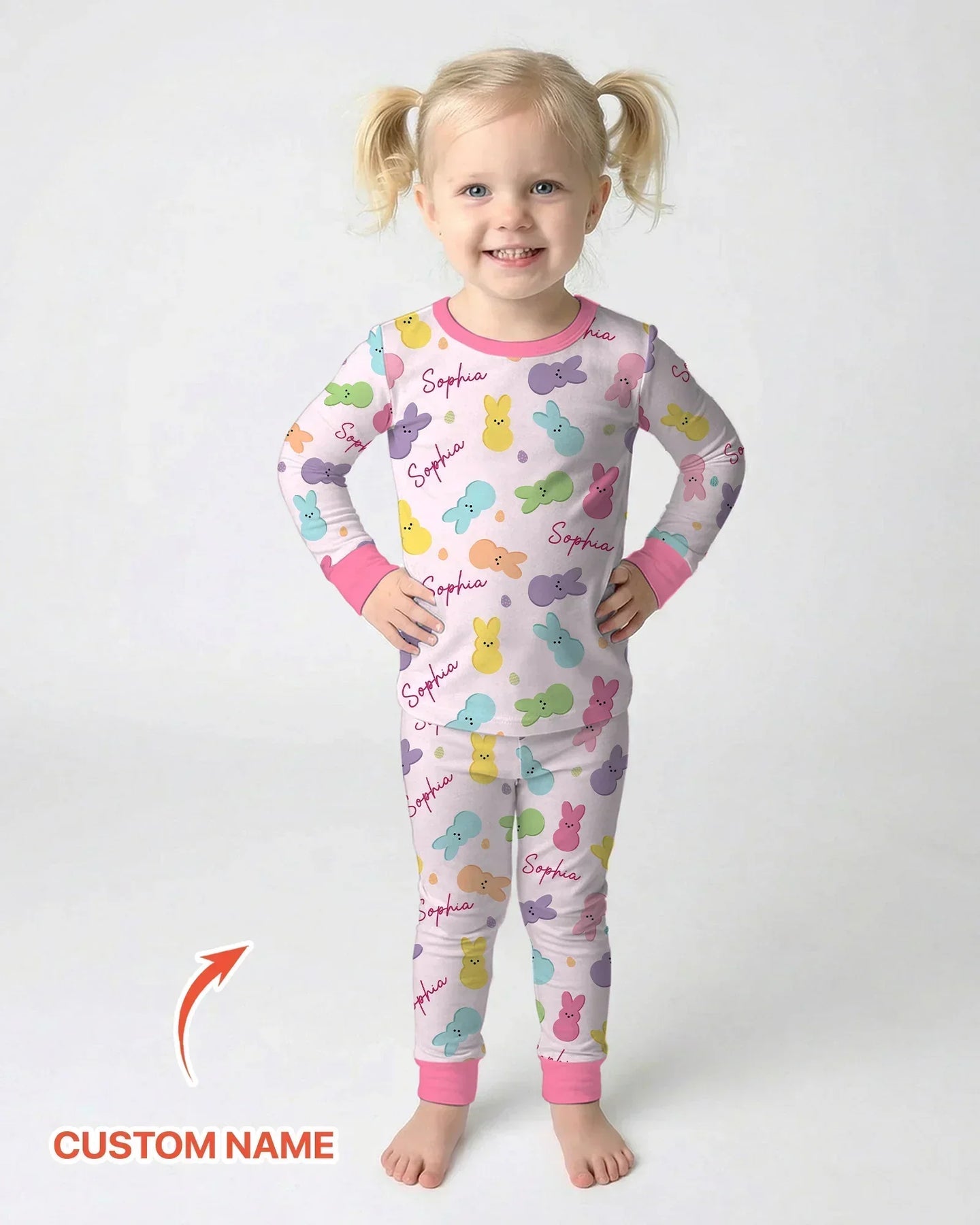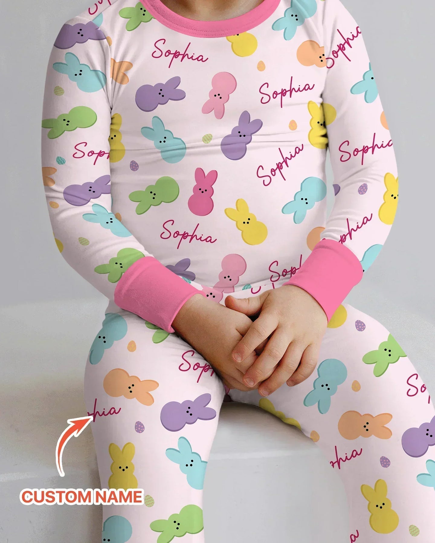 Personalized Easter Bunnies Family Matching Two Piece Long Sleeve Pajama Set
