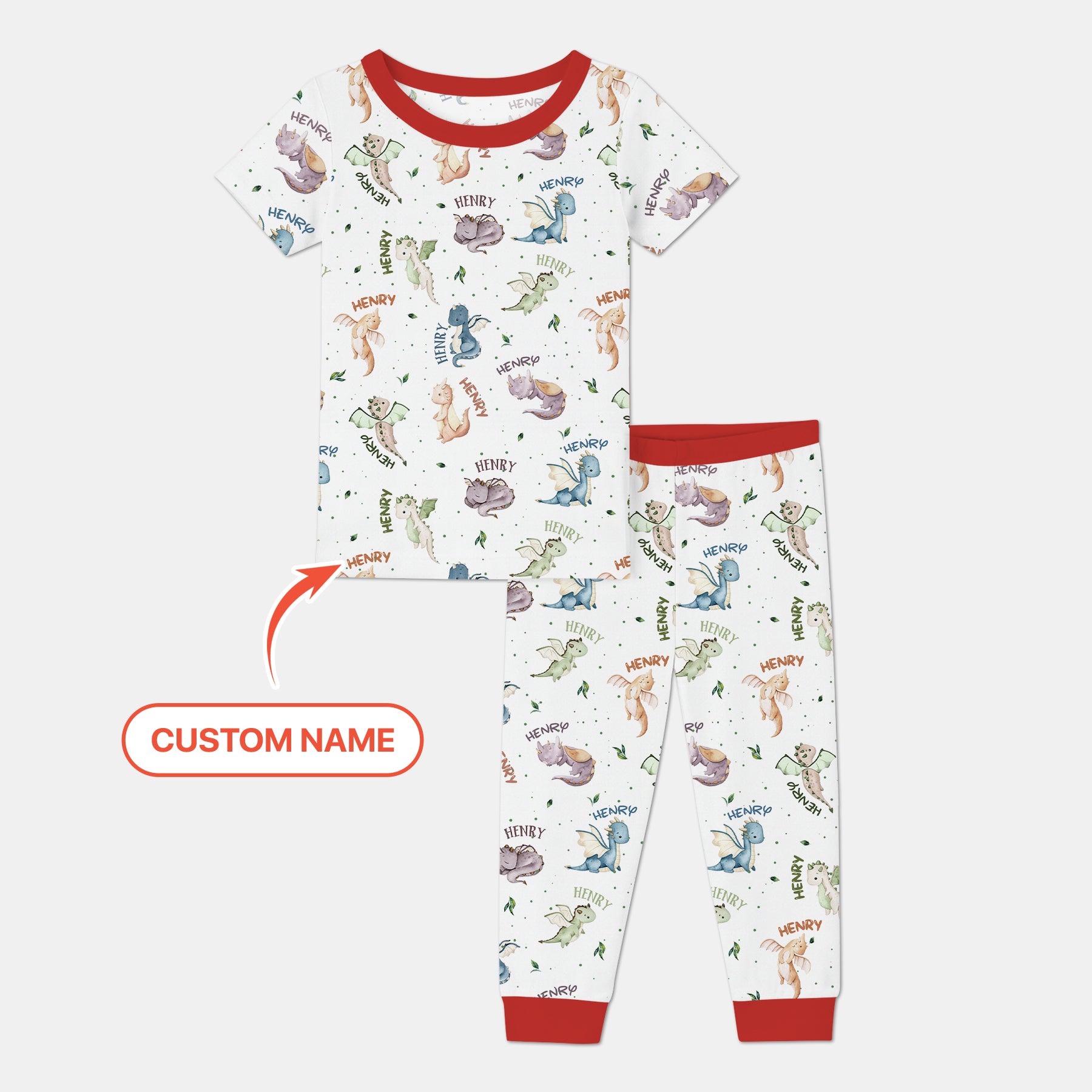 Sweet Baby Dragons Custom Name Two Piece Short Sleeve Pajama Set
