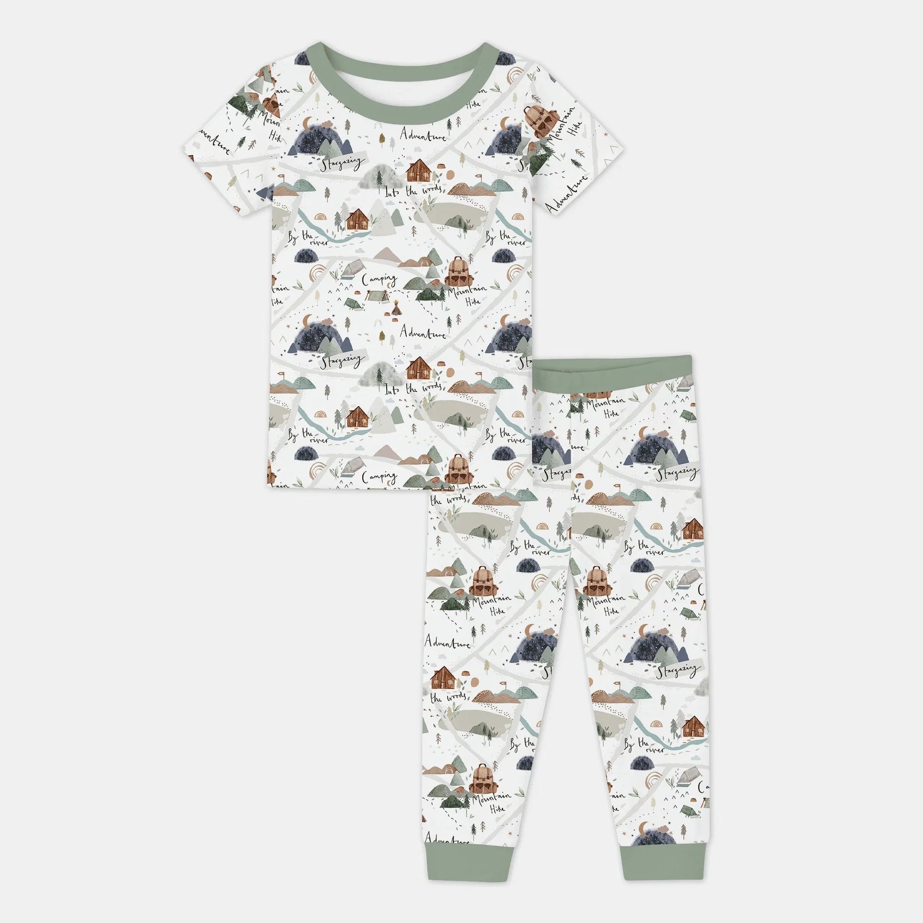 Camping Route Map Two Piece Short Sleeve Pajama Set