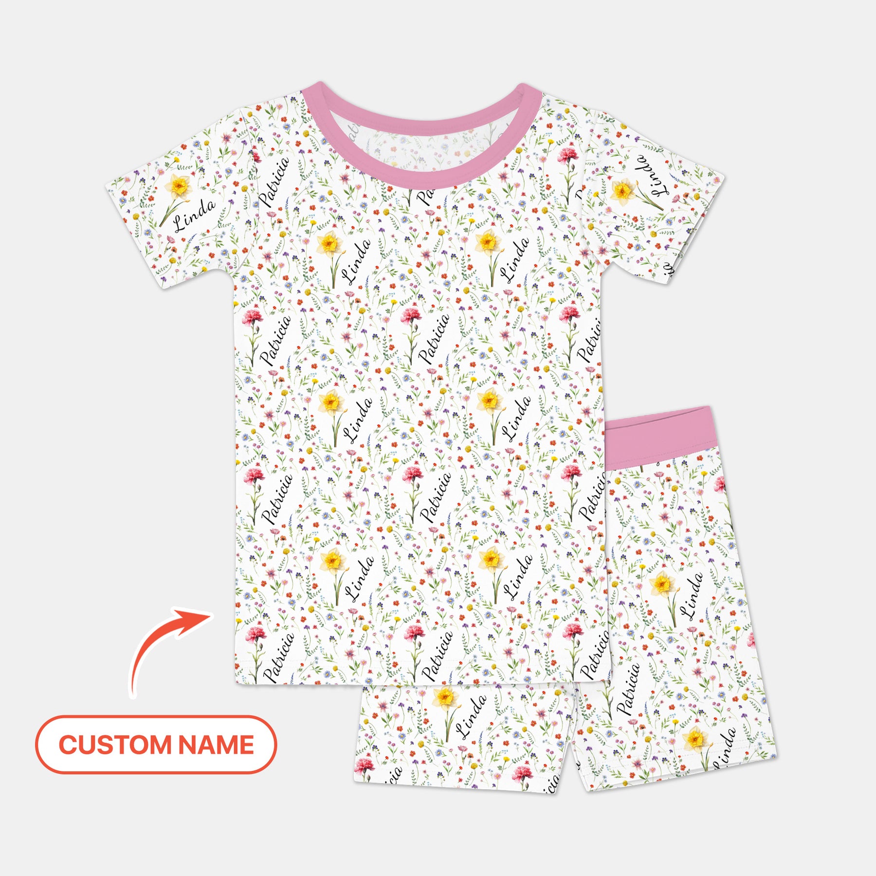 Birth Flower Custom Name Family Daughter Sister Two Piece Short Sleeve Shorts Pajama Set