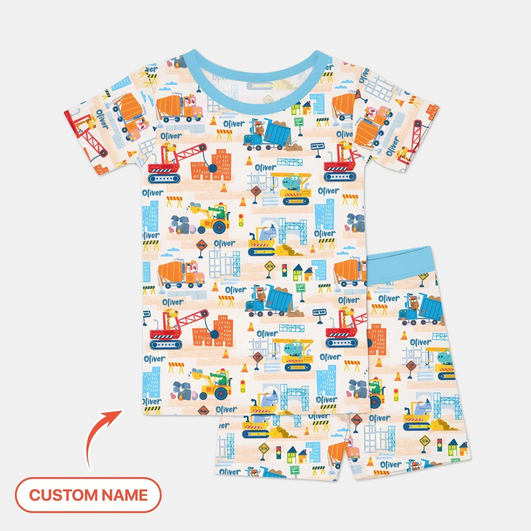 Little Builder Friends Custom Name Two Piece Short Sleeve Shorts Pajama Set