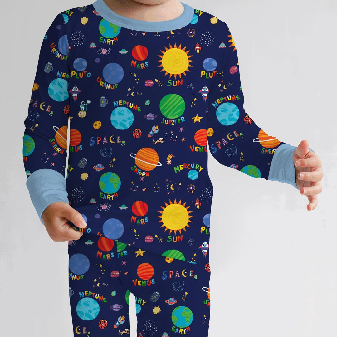 The deep navy background makes every planet pop, helping kids explore Mercury, Jupiter, Neptune, and more — all while staying cozy and comfy. Made from ultra-soft, breathable, and stretchy fabric, these pajamas keep your child warm and snug from story time to stargazing dreams.