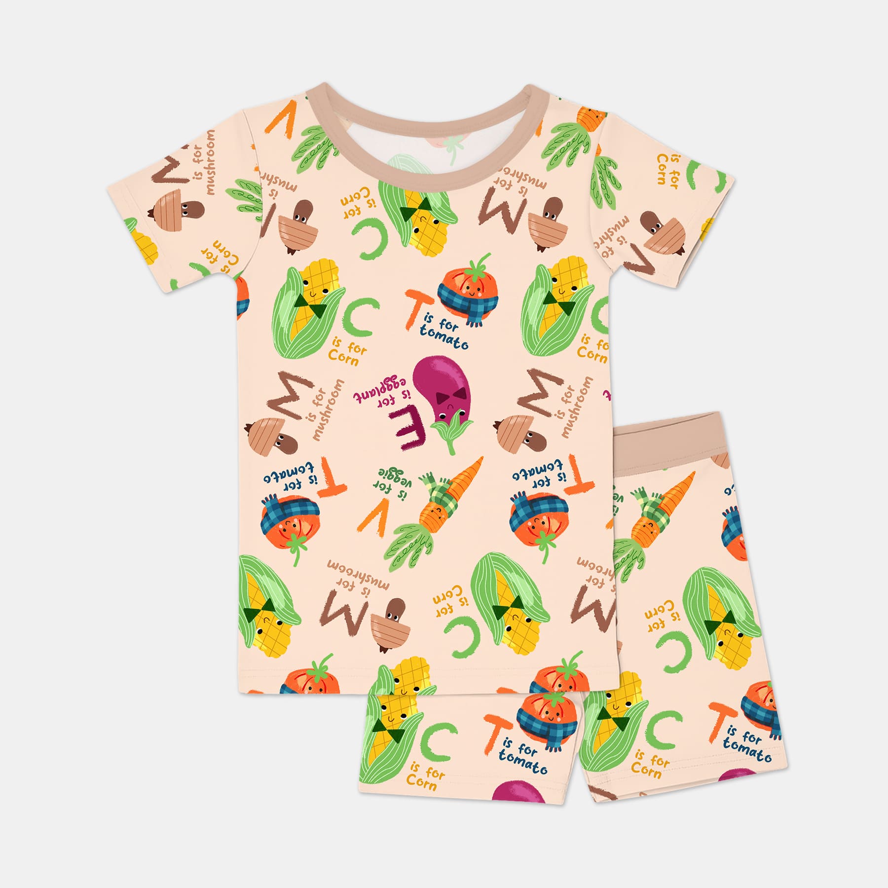 Veggie Letter Two Piece Short Sleeve Shorts Pajama Set