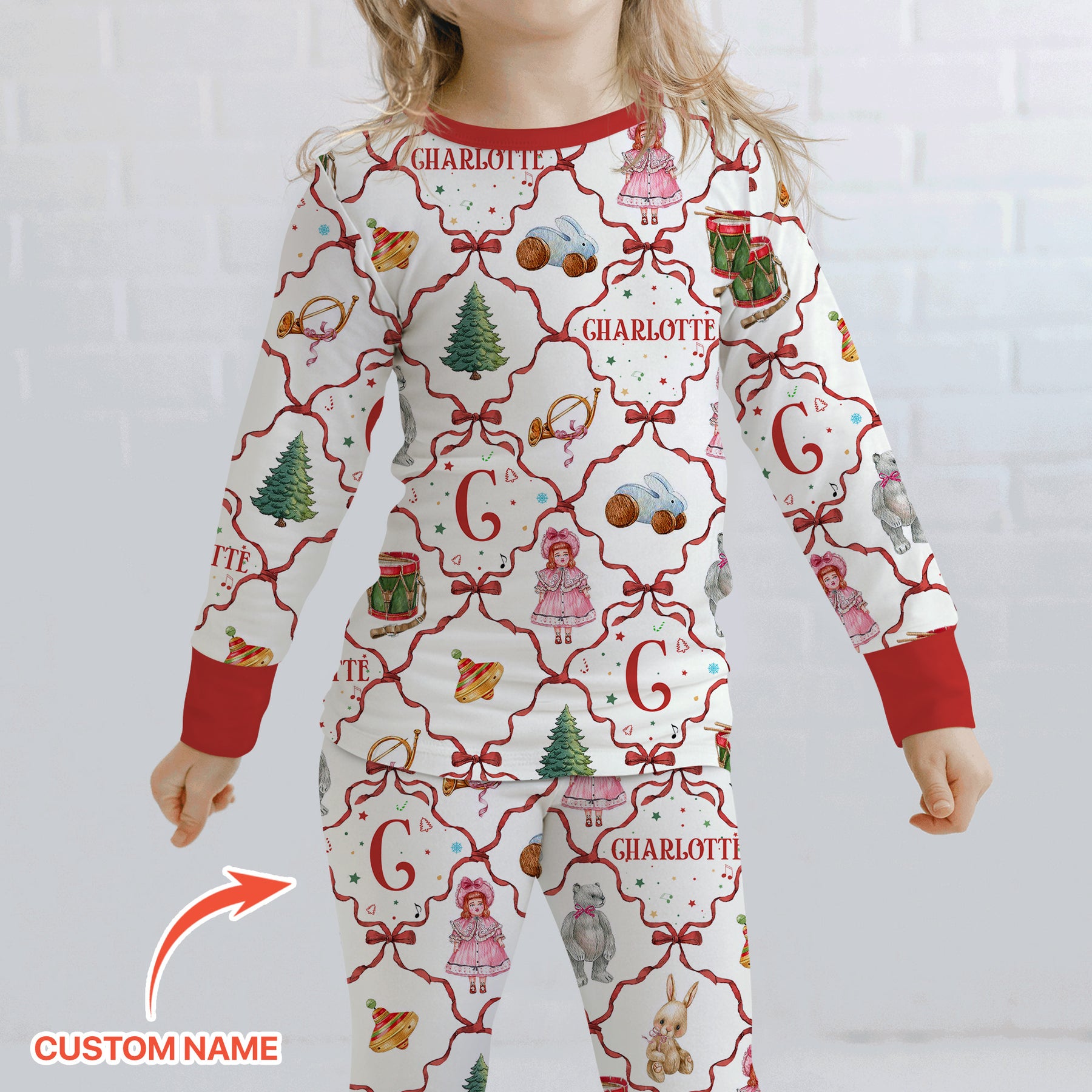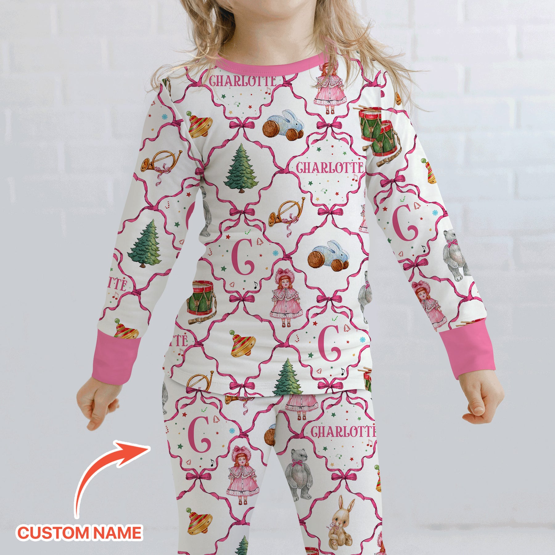 Vintage Christmas Toy Custom Name Girl Two Piece Long Sleeve Pajama Set