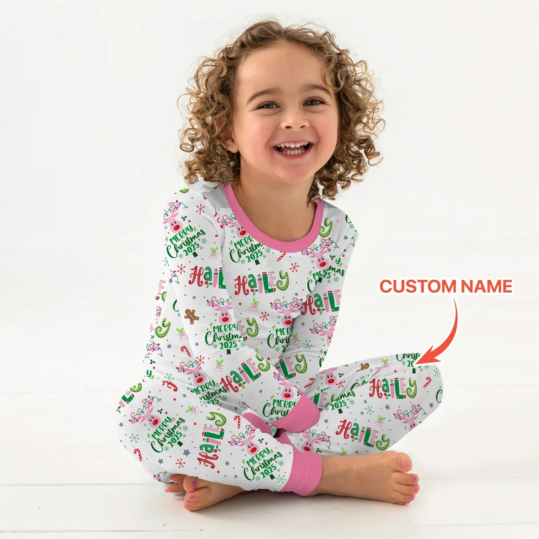 Celebrate the season in style with our Custom name "Whimsical Little Things". Made from buttery-soft bamboo fabric, these festive PJs are breathable, cozy, and gentle on sensitive skin. Add your child’s name for a magical holiday keepsake.