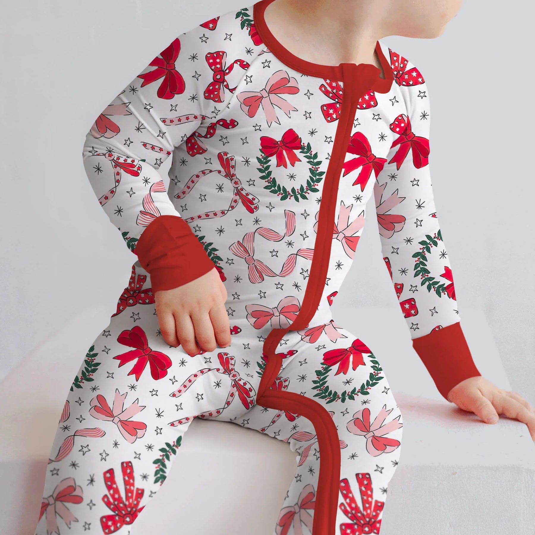 The Christmas Bows Convertible Zippered Romper is a festive delight, adorned with cheerful bows that celebrate the holiday spirit. Crafted from soft, cozy fabric, it ensures your little one stays warm and stylish. The easy zipper design makes changing a breeze, perfect for busy holiday mornings.