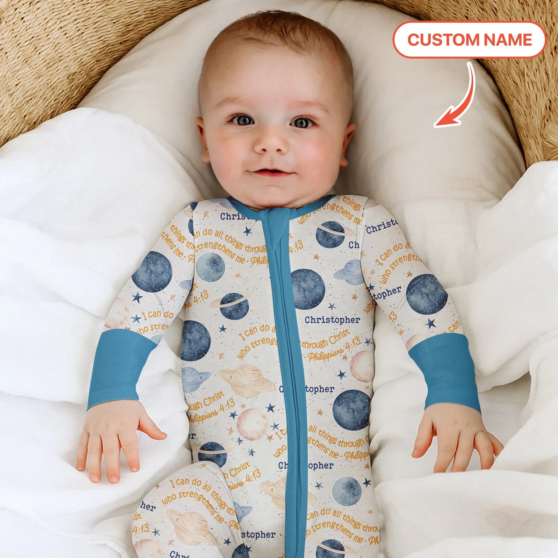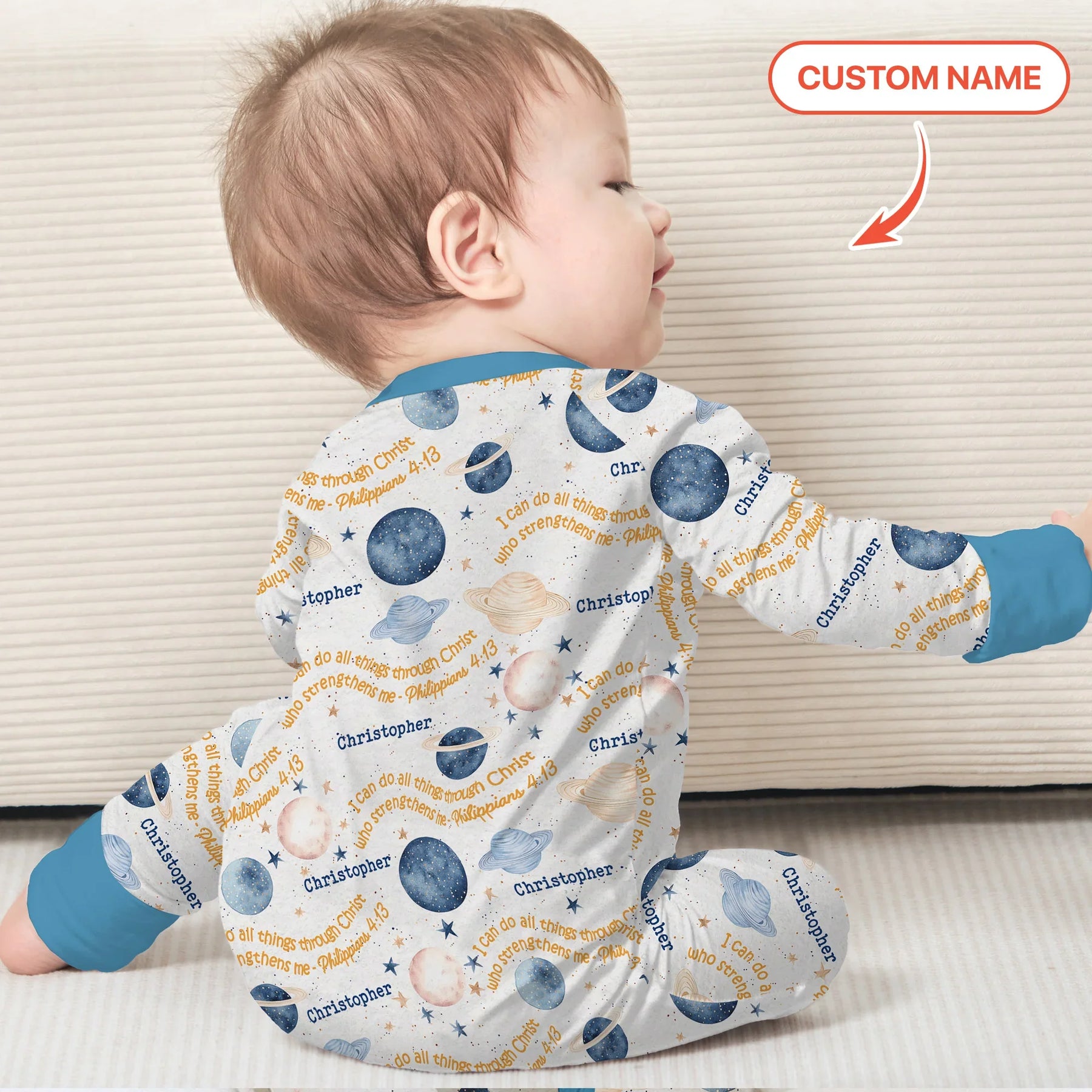 Let your little one dream big and shine bright with faith! The I Can Do All Things Through Christ Collection brings Philippians 4:13 to life in a playful, colorful way — reminding every child that with God’s strength, nothing is impossible. Each pajama set features your child’s custom name, beautifully blended into a pattern of rainbows and clouds for girls 🌈, or planets and stars for boys 🌙 — symbolizing hope, courage, and limitless potential. Soft, cozy, and filled with love, these pajamas are more than bedtime wear — they’re a nightly reminder that your little one is strong, capable, and wonderfully made through Christ. 💖 Perfect for faith-filled families who want every bedtime to end with comfort, confidence, and God’s word close to heart. |