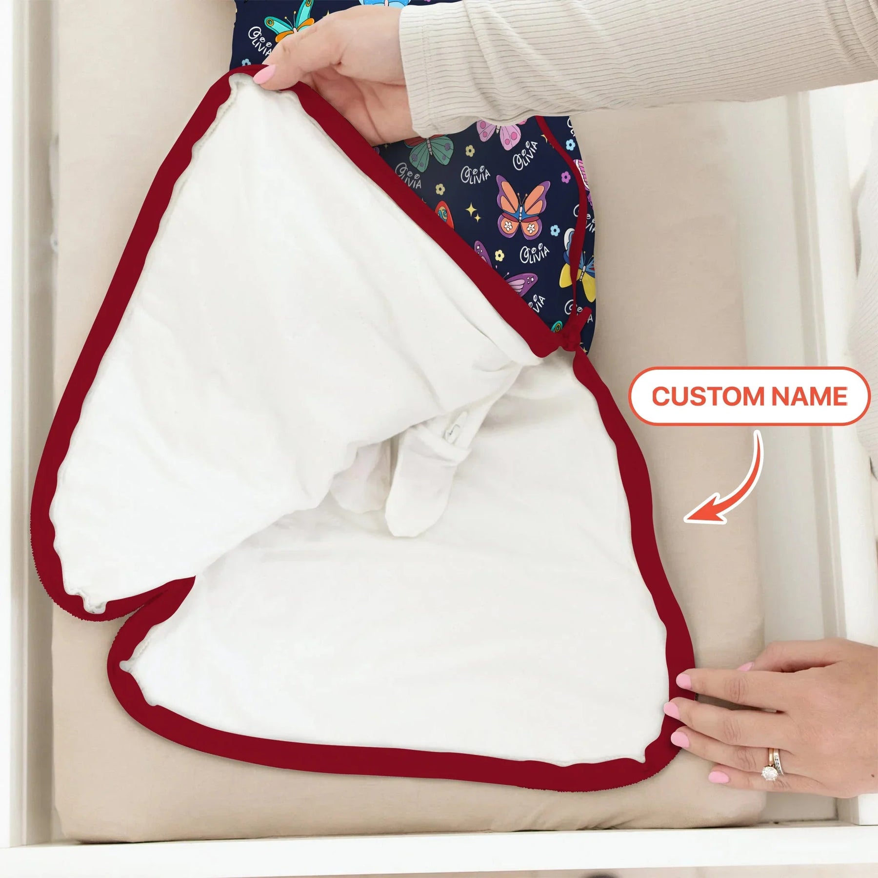 - Zipper and seams are fully encased to safeguard delicate skin