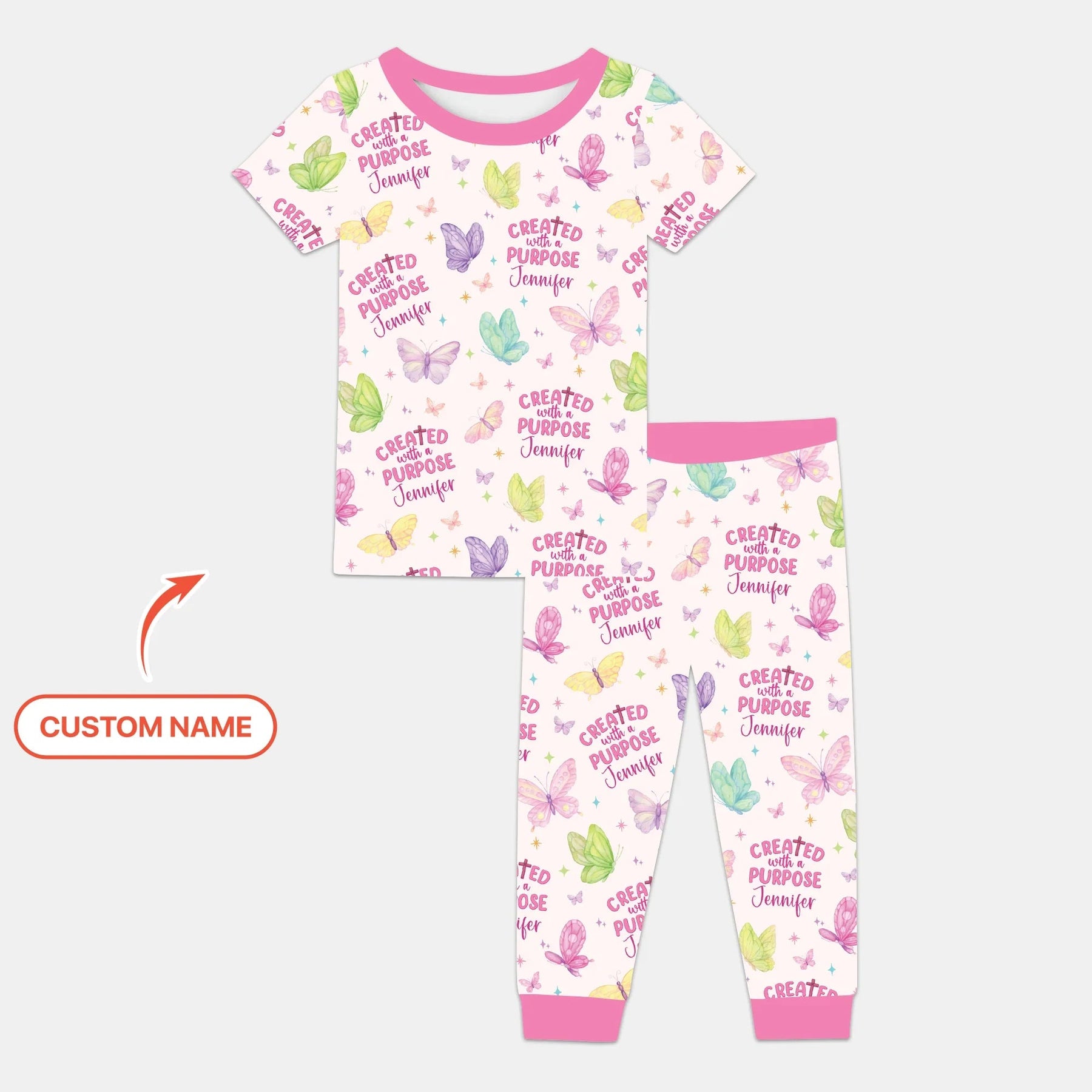 Created With A Purpose Custom Name Two Piece Short Sleeve Pajama Set - Zumbamboo