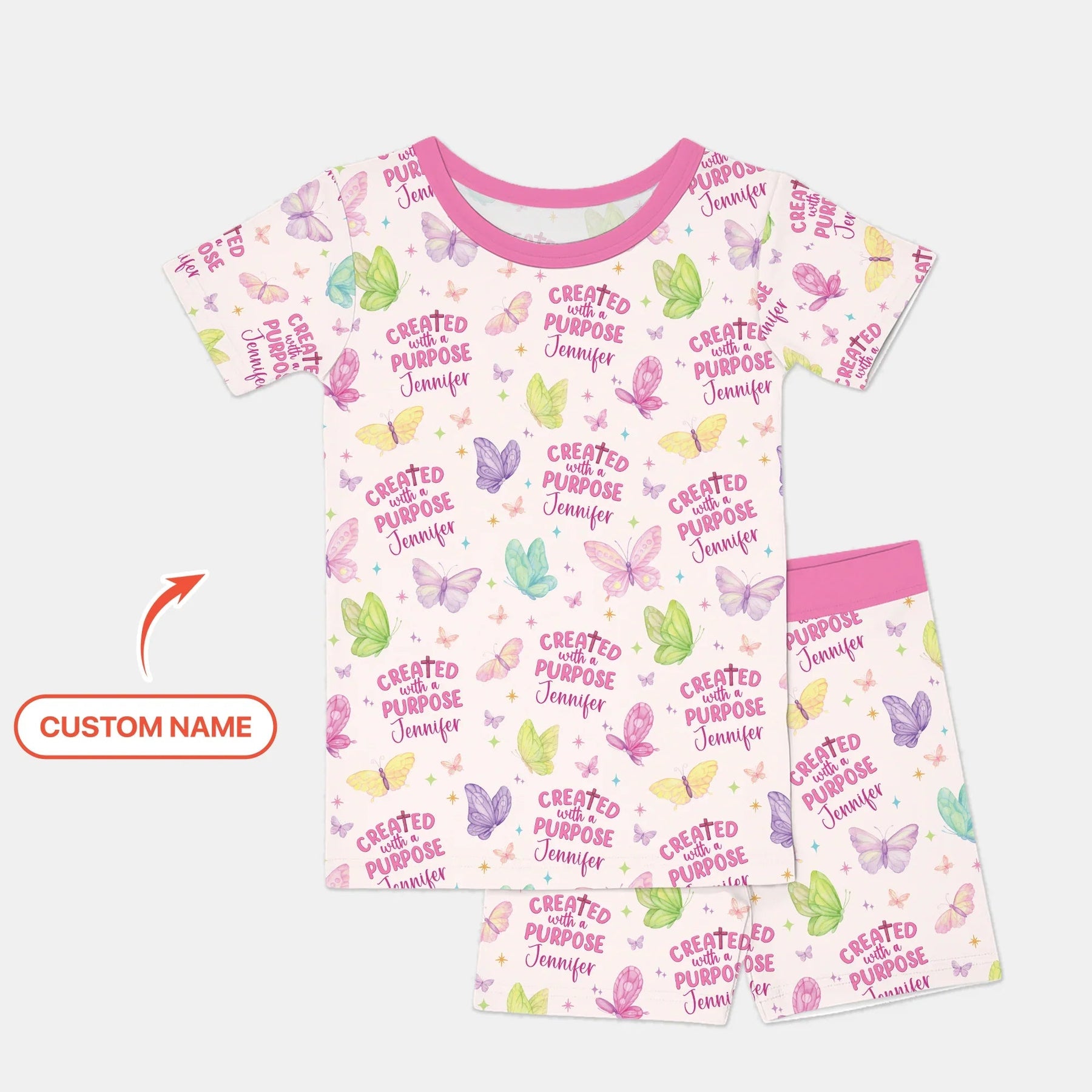 Created With A Purpose Custom Name Two Piece Short Sleeve Shorts Pajama Set - Zumbamboo