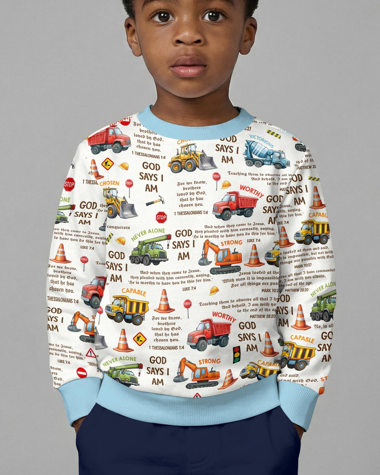 Bible Verse Construction Trucks Crewneck Sweatshirt