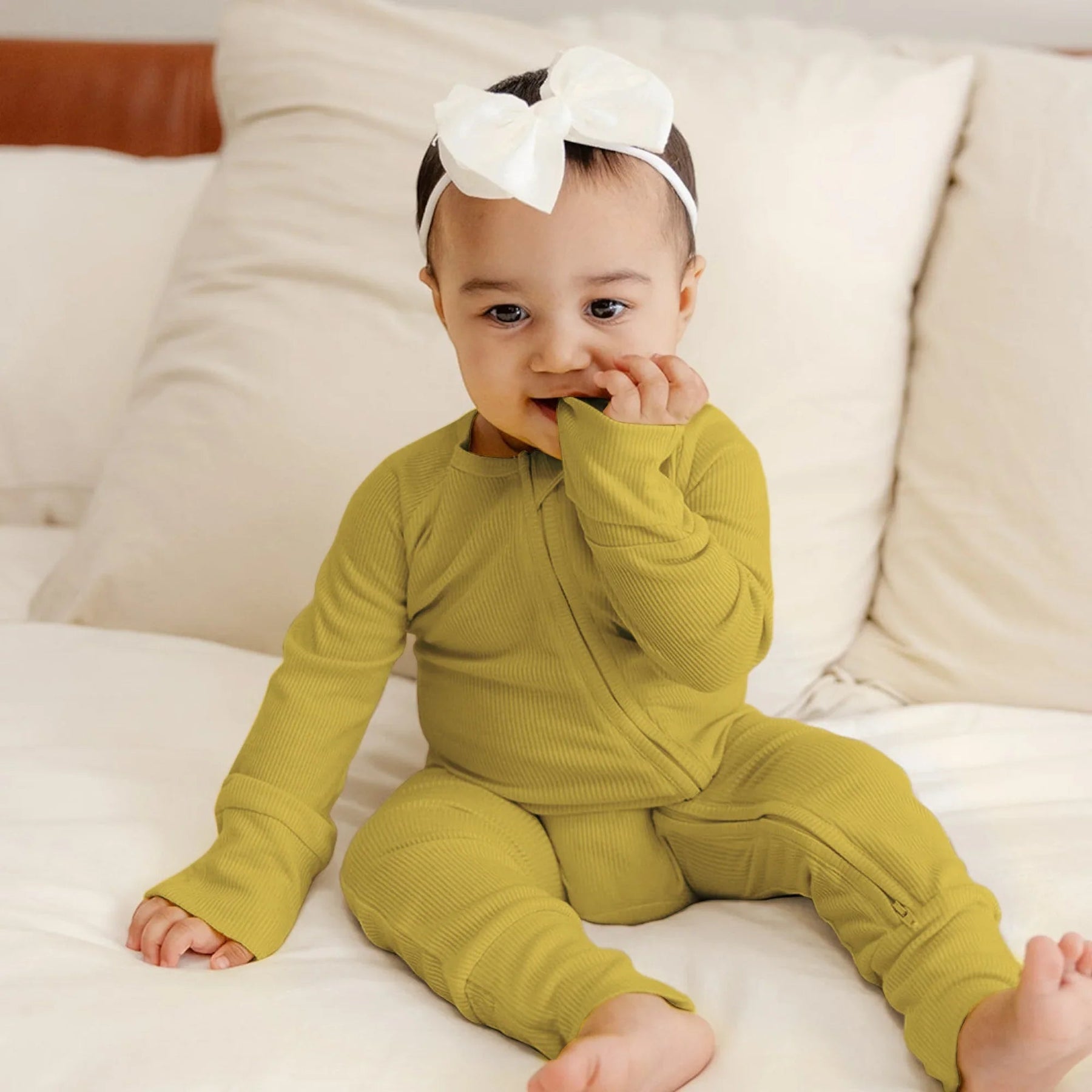 Erleben Sie Komfort im Alltag mit unseren gerippten Bambus-Pyjamas und -Zippies. Diese Pyjamas aus luxuriös weichem, dehnbarem Bambus-Rippstoff halten die Kleinen zu jeder Jahreszeit kuschelig, atmungsaktiv und behaglich. Sanft zu empfindlicher Haut und für nächtlichen Komfort konzipiert, eignen sie sich perfekt zum Schlafen, Spielen und Kuscheln.