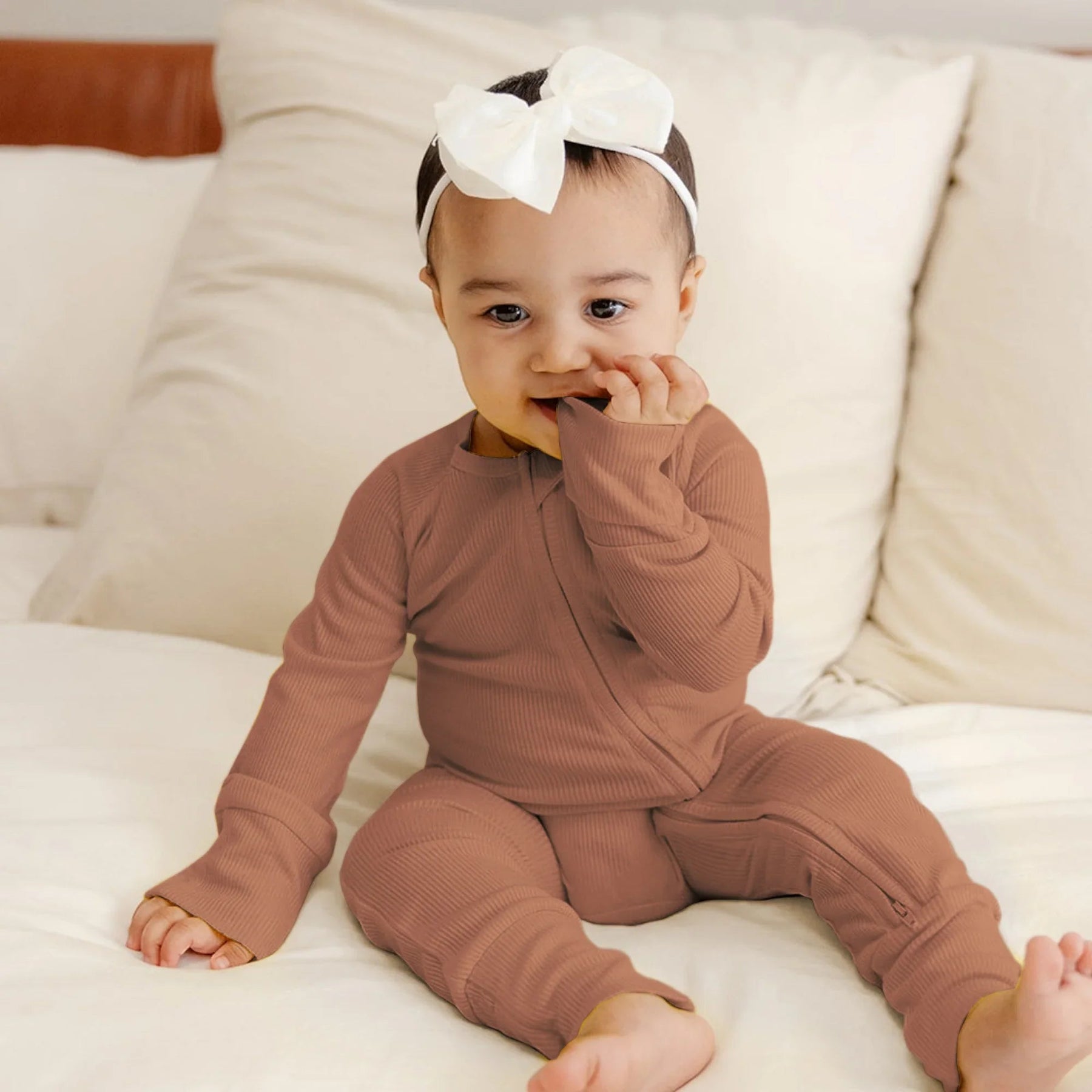 Erleben Sie Komfort im Alltag mit unseren gerippten Bambus-Pyjamas und -Zippies. Diese Pyjamas aus luxuriös weichem, dehnbarem Bambus-Rippstoff halten die Kleinen zu jeder Jahreszeit kuschelig, atmungsaktiv und behaglich. Sanft zu empfindlicher Haut und für nächtlichen Komfort konzipiert, eignen sie sich perfekt zum Schlafen, Spielen und Kuscheln.