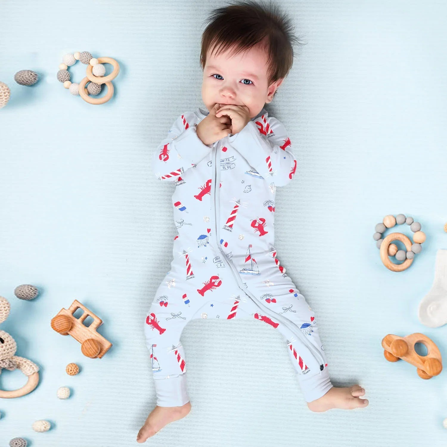 Dieser aus speziell gefrästem Bambus gefertigte Strampler mit festlichem 4. Juli-Muster ist weich und atmungsaktiv und perfekt für empfindliche Haut. Die umklappbaren Fußbündchen lassen sich leicht von Fußlos auf Fuß umstellen, und der Doppelreißverschluss ermöglicht schnelles Windelwechseln – ideal für eine bequeme und stilvolle Feier.
