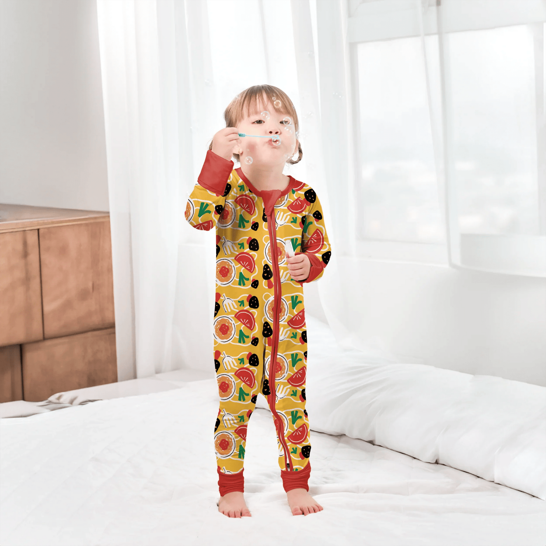 Wir präsentieren unseren Spaghetti-Baby-Strampler. Ein lustiger, wirbelnder Spaghetti-Print macht die Mahlzeit zu einem witzigen Mode-Statement. Aus weichem, bequemem Stoff gefertigt, bietet dieser Strampler ein verspieltes Design und ganztägige Gemütlichkeit für Ihren Kleinen.