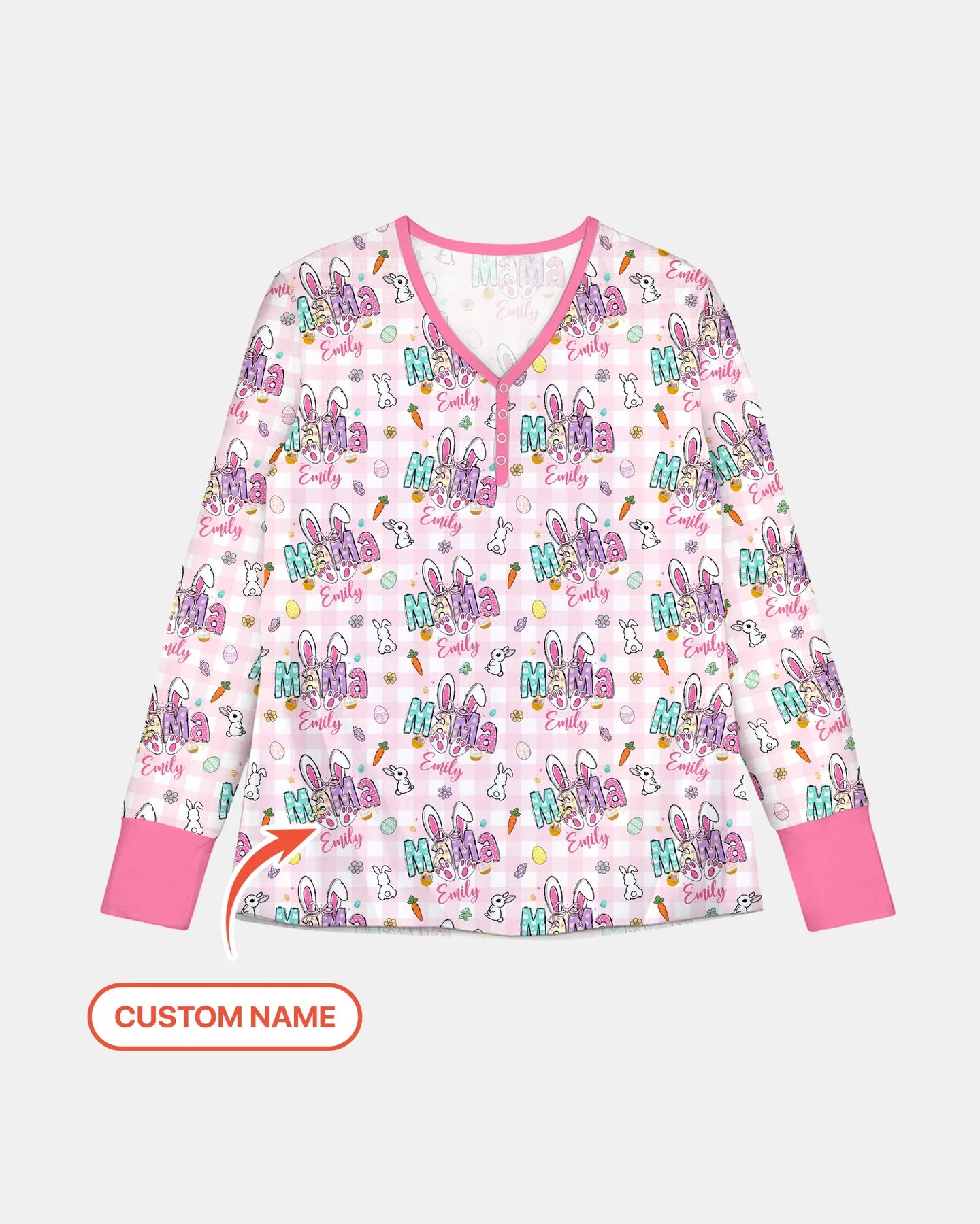 Featuring an adorable pastel gingham pattern with playful bunnies, Easter eggs, carrots, and cheerful “Mama” details, this design is personalized with names to make every piece extra special. Crafted from our signature ultra-soft, breathable bamboo fabric, these pajamas keep everyone cozy and comfy for Easter morning, family photos, egg hunts, and relaxing nights. A perfect way to celebrate Easter as a matching family in style 💕✨