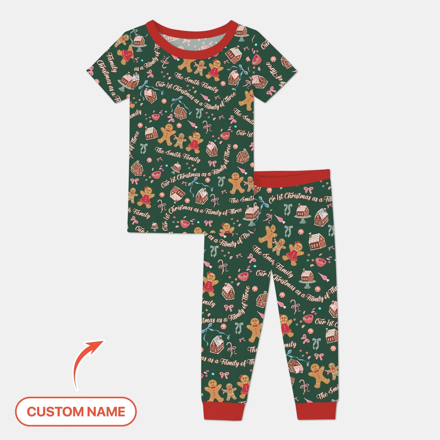 Custom Name Family Gingerbread Two Piece Short Sleeve Pajama Set , Custom Name Family Gingerbread Two Piece Short Sleeve Pajama Set - 12-18M