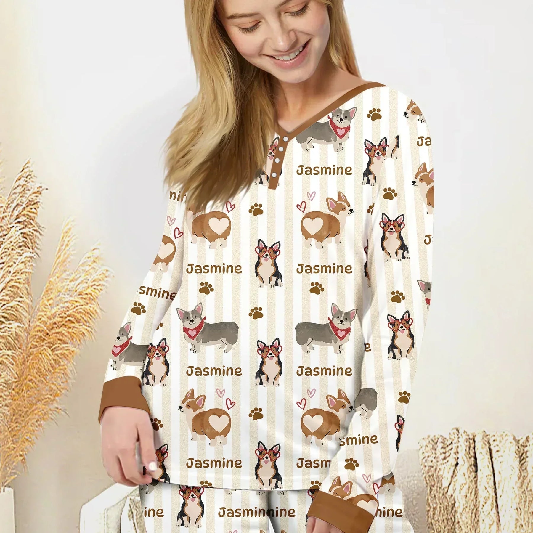 Custom Name Playful Corgis Family Matching Women Pajama Set