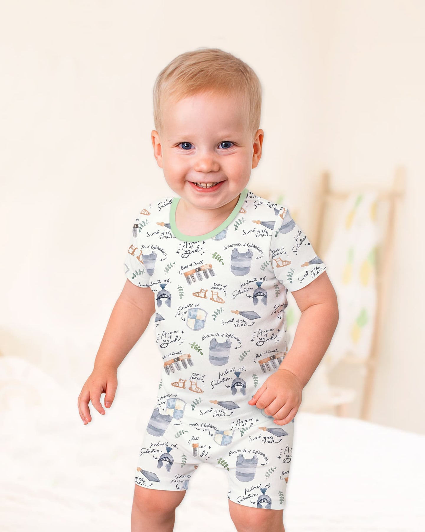 🛡️ Ephesians 6:10–18 – Armor of God Bamboo Zippies & PJ Sets feature a meaningful, faith-inspired pattern that brings Scripture to life. The design highlights each piece of the Armor of God—helmet of salvation, shield of faith, breastplate of righteousness, belt of truth, shoes of peace, and the sword of the Spirit—in a soft, child-friendly style.