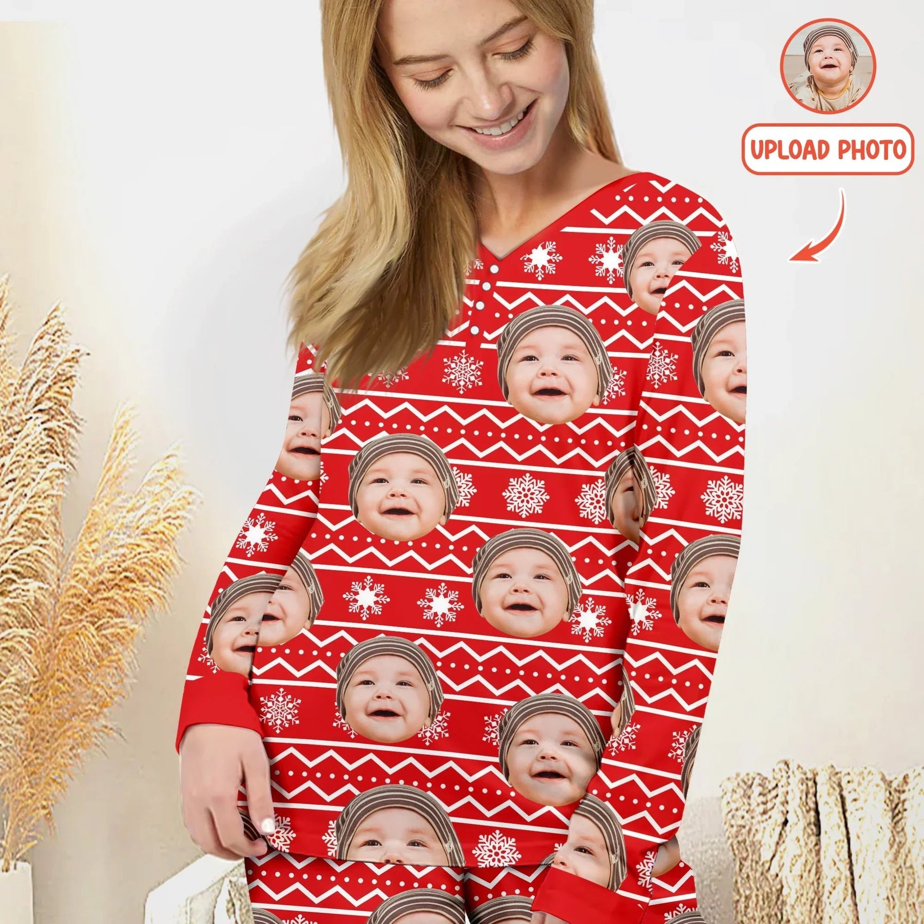 Benutzerdefiniertes Foto-Weihnachtspyjama-Set für Damen