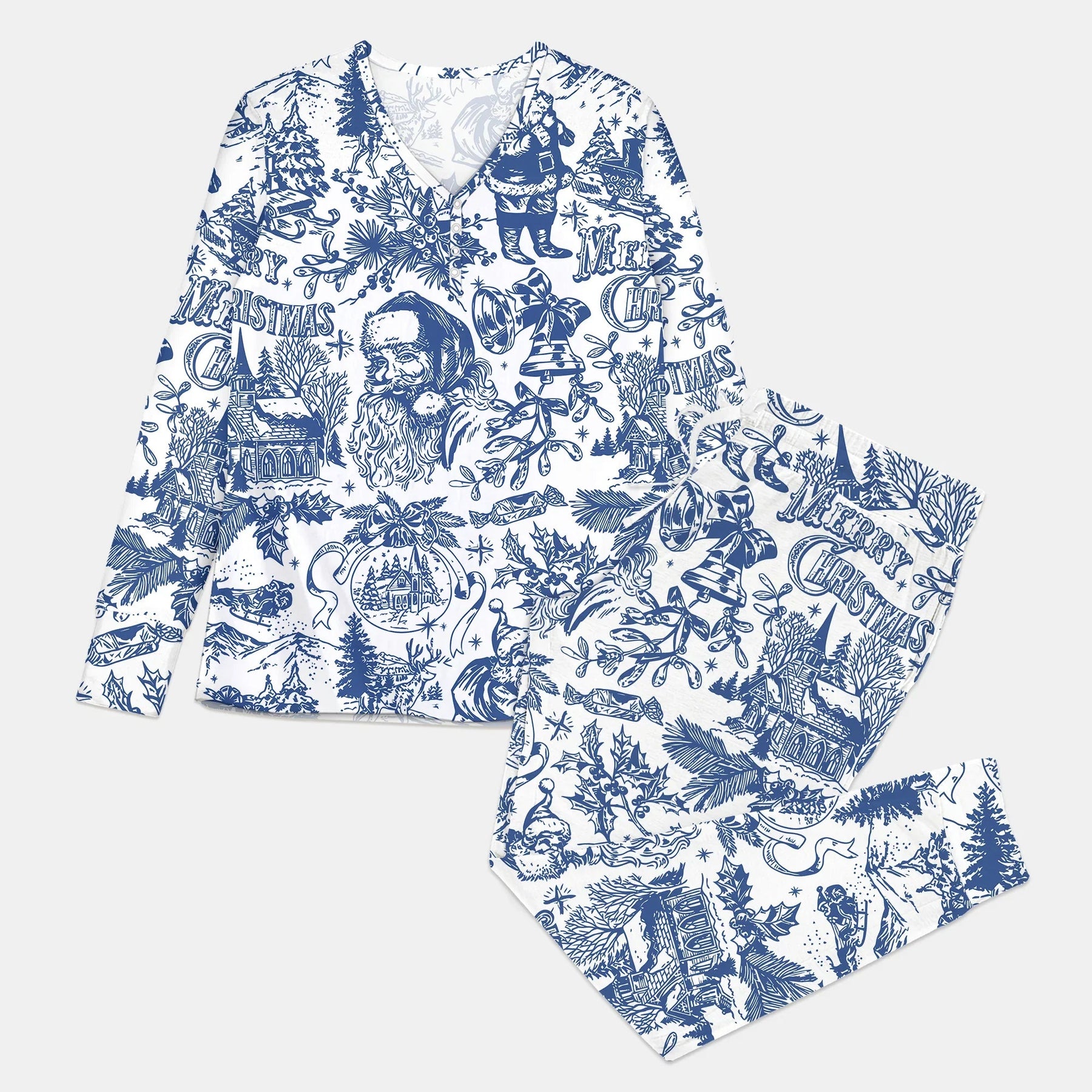 Familien-Weihnachtspyjama-Set in Chinoiserie-Optik für Damen