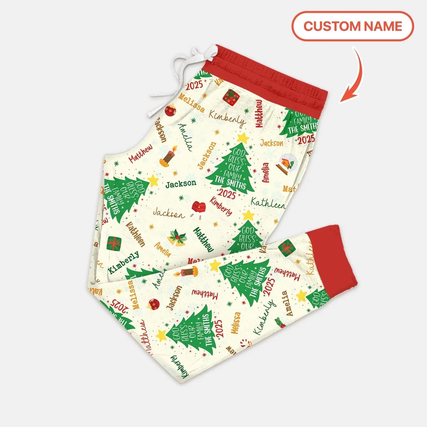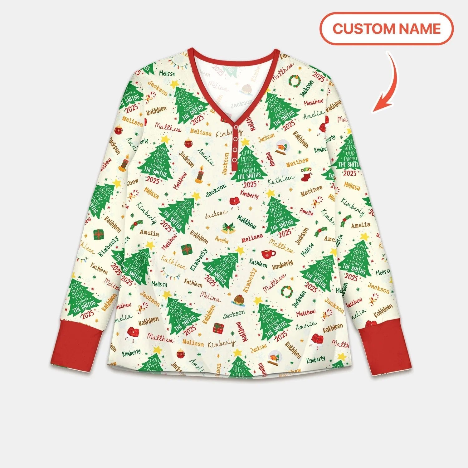 Each pajama set is beautifully designed with Christmas trees, wreaths, and joyful holiday icons, bringing warmth and peace to your family gatherings. What makes it extra special? Every piece can be personalized with each family member’s name, turning your matching PJs into a symbol of unity and blessing.