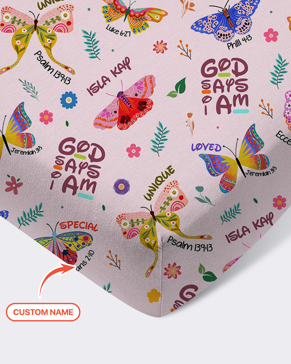 Schlafsack mit individuellem Namen „Gott sagt, ich bin Schmetterling“