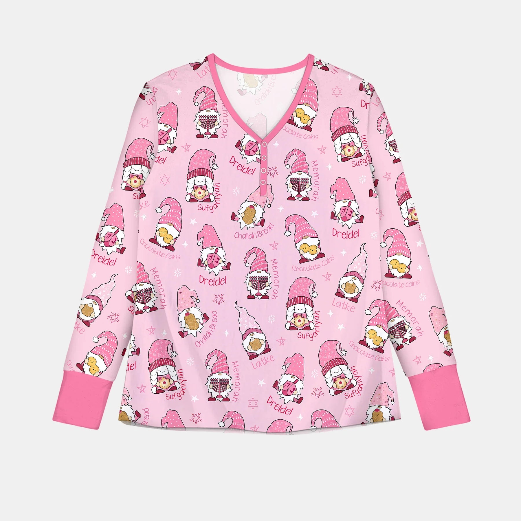 Celebrates the joy of the Festival of Lights with a playful twist! Featuring adorable gnomes, menorahs, dreidels, and festive treats, these cozy bamboo pajamas come in soft pink and blue hues—perfect for lighting candles, spinning dreidels, and making family memories all Hanukkah long.