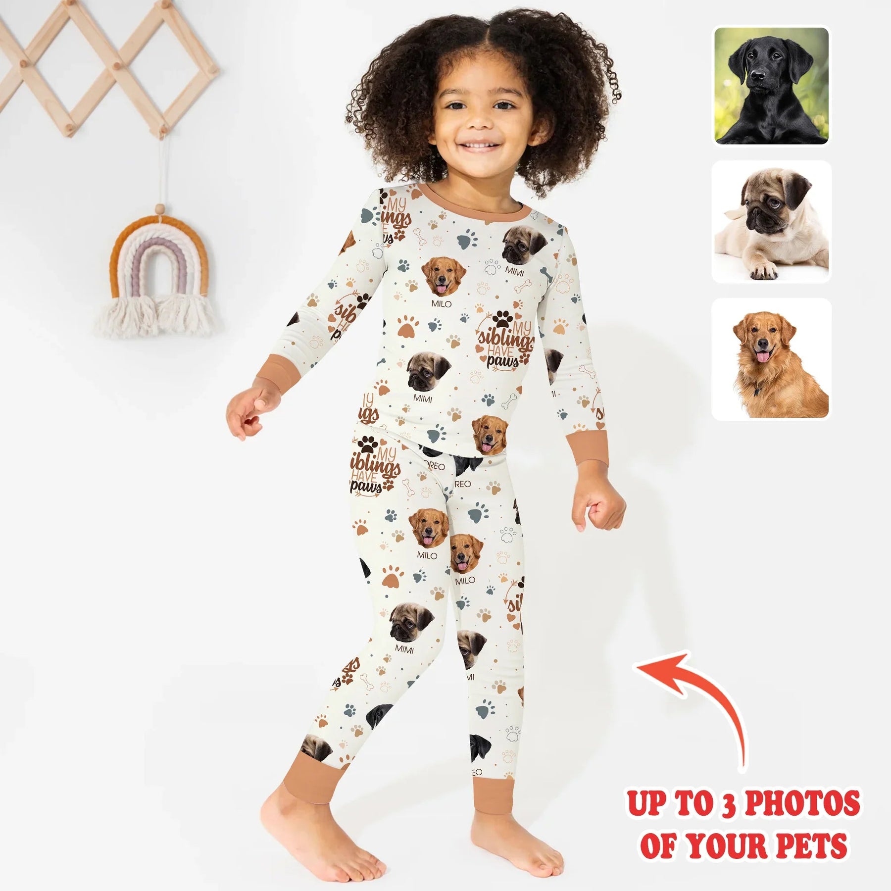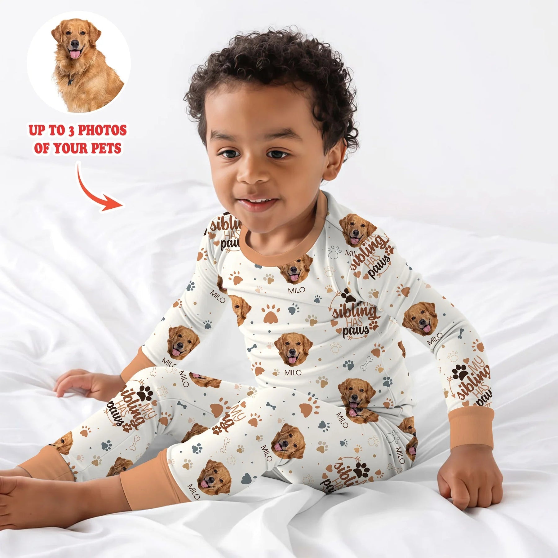 My Siblings Have Paws Upload Photo Two Piece Long Sleeve Pajama Set - Zumbamboo