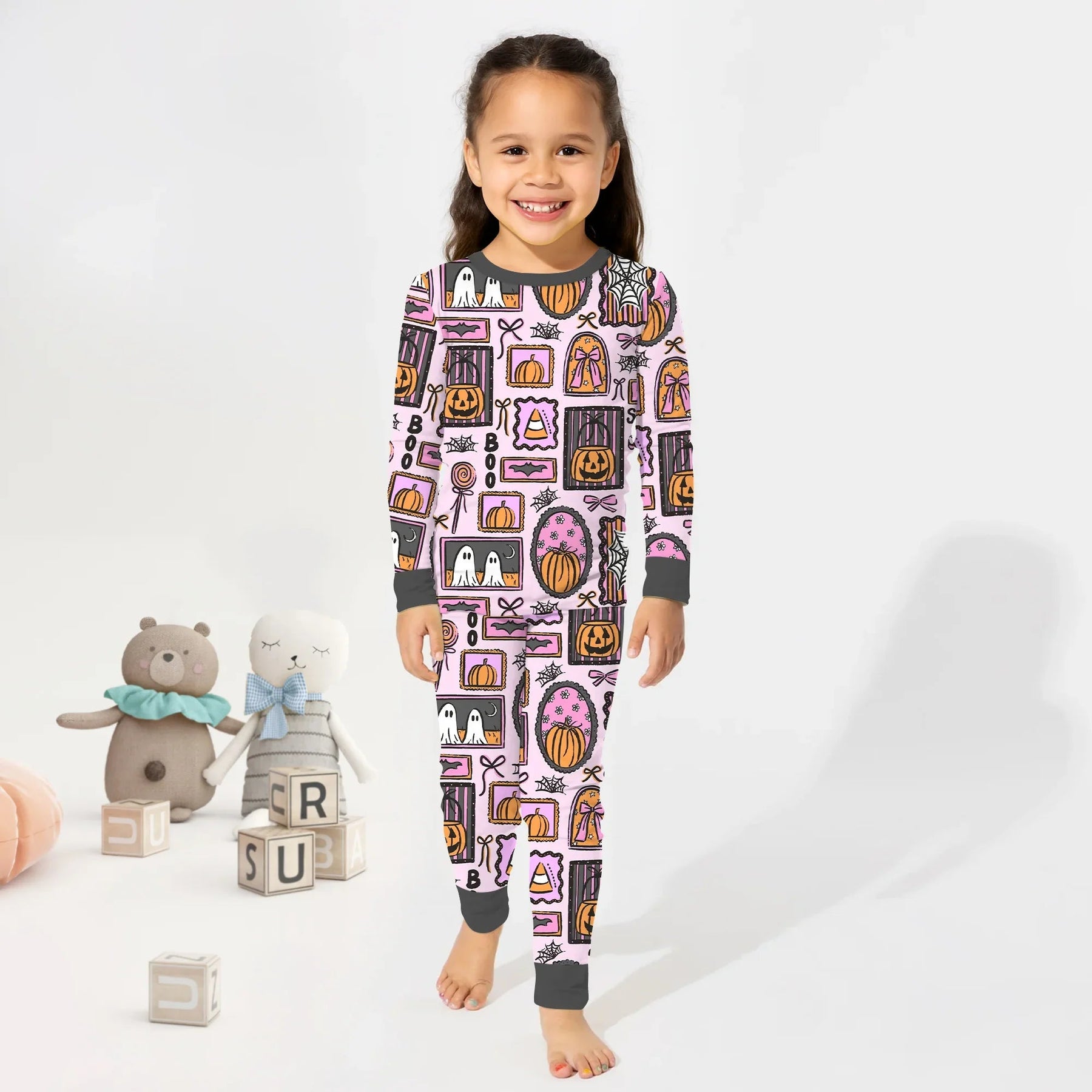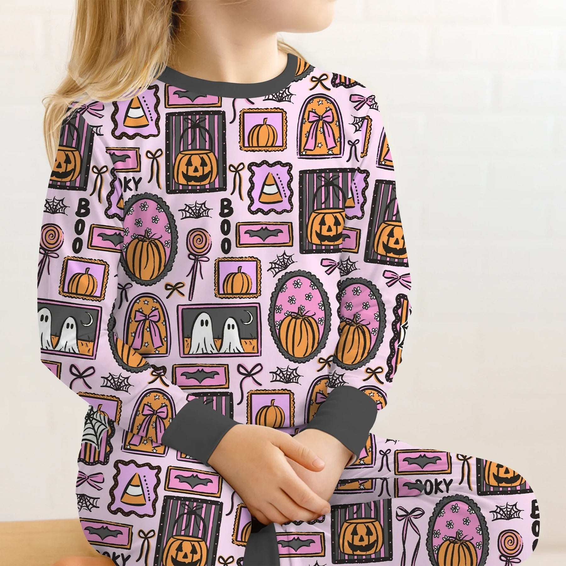 Spooky Frames Zweiteiliges Langarm-Pyjama-Set für Halloween