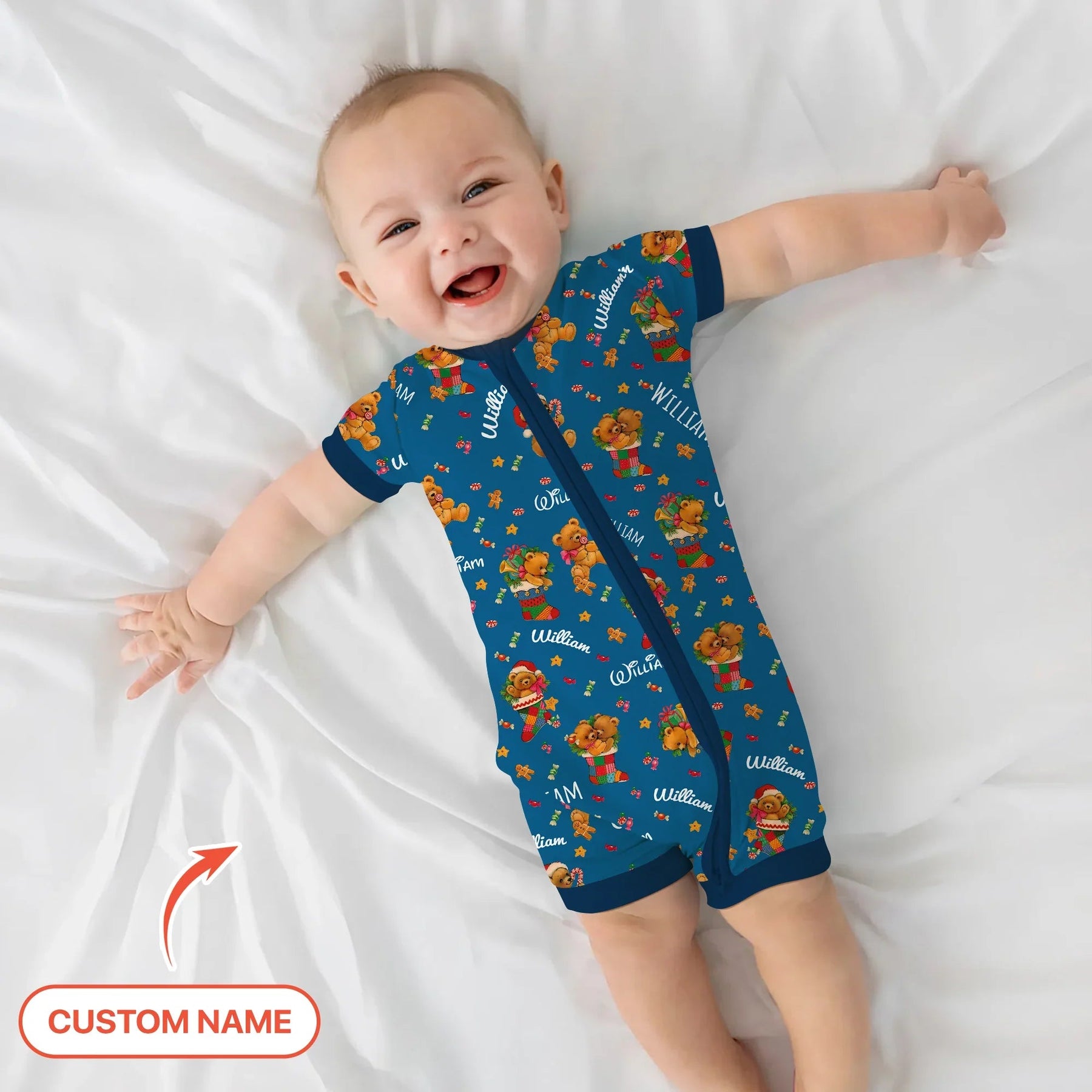Teddy Bear Merry Christmas Custom Name Shorty Zippy - Zumbamboo