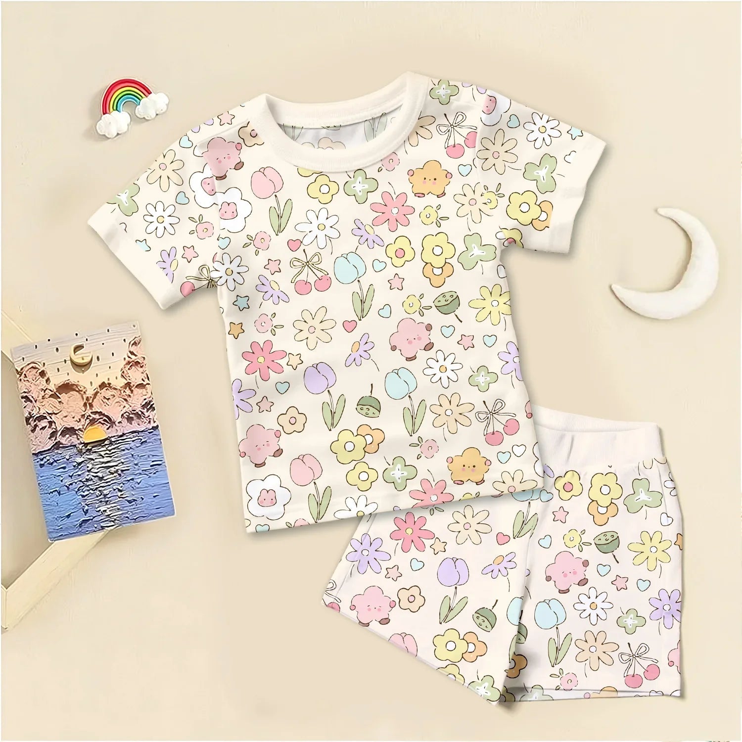 Whimsical Bloom – Zweiteiliges Pyjama-Set mit langen Ärmeln